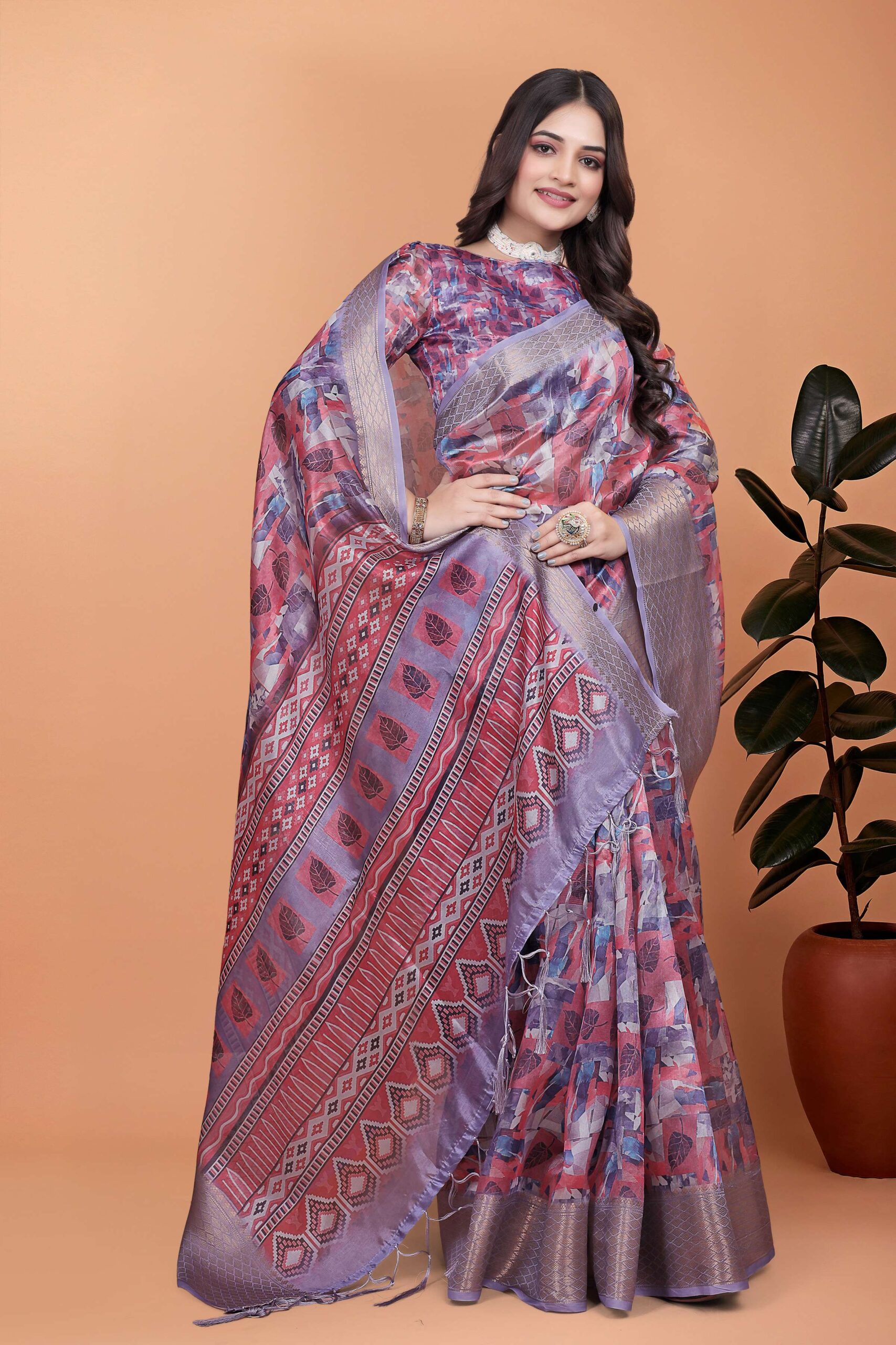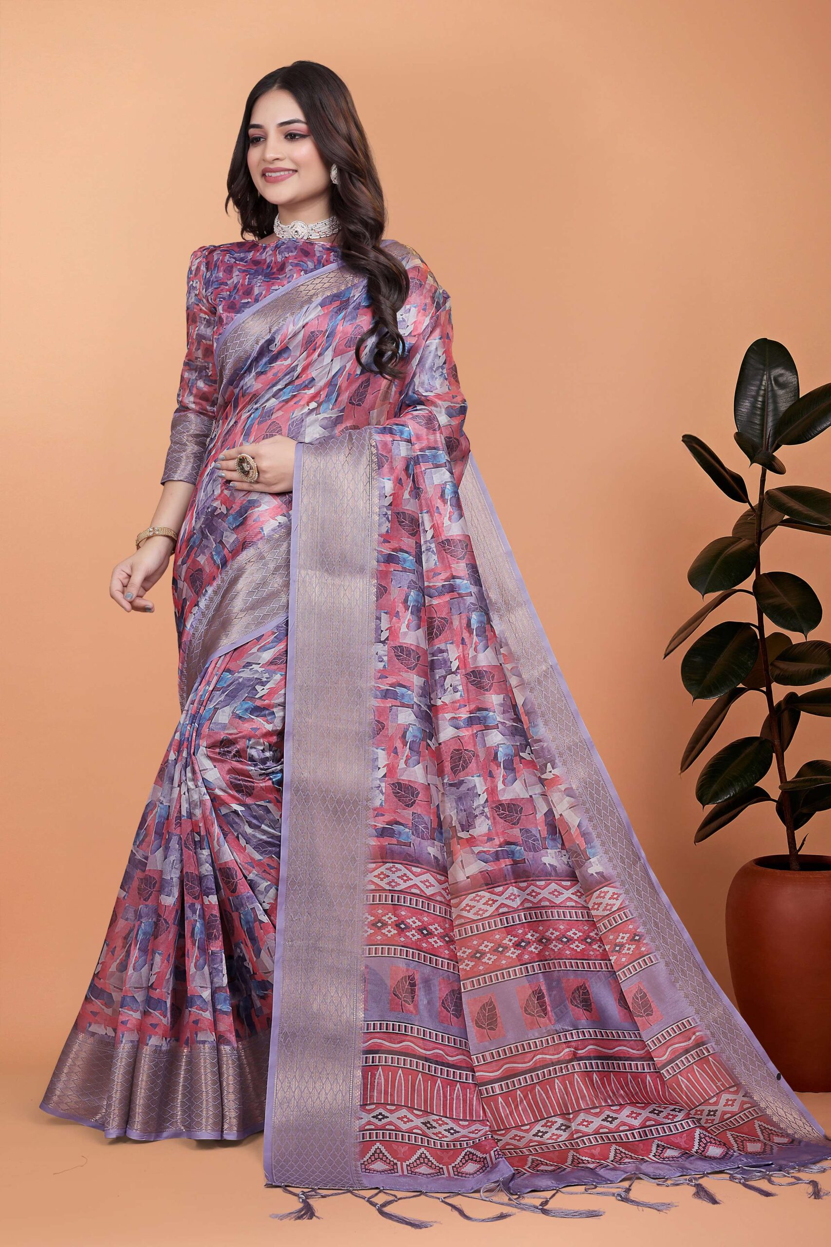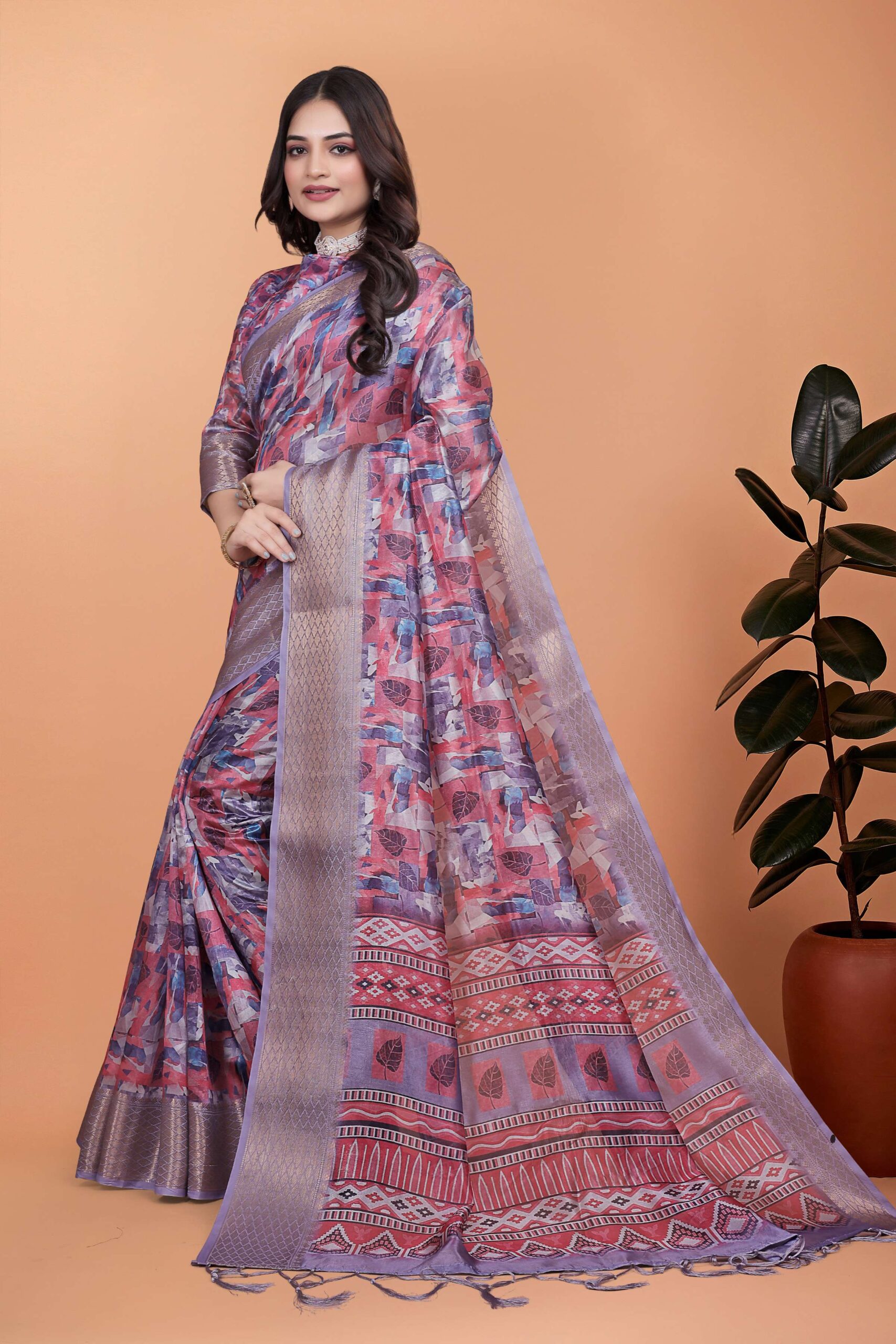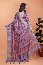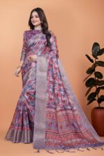 Embrace the freshness of pastel hues with this mint green linen cotton saree, designed for elegance and everyday comfort. The soft fabric ensures a lightweight drape, making it perfect for all-day wear. Adorned with charming pink floral prints, it beautifully blends modern style with traditional grace.