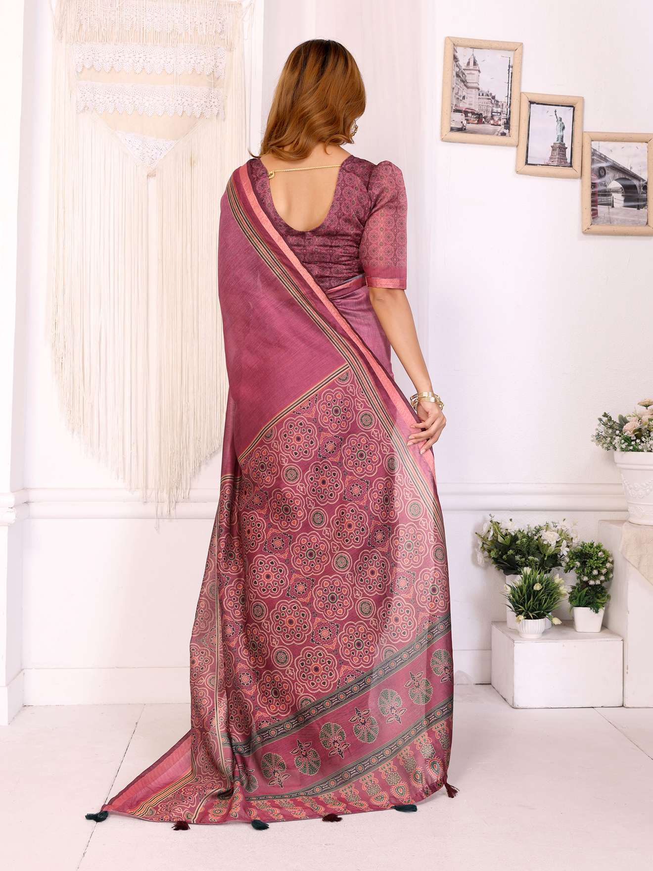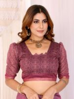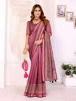 Step into timeless grace with the Rosewood Elegance Chanderi Saree , crafted in a rich rosewood pink tone. This saree features intricate ethnic motif prints along the border and pallu, blending classic artistry with a modern touch.