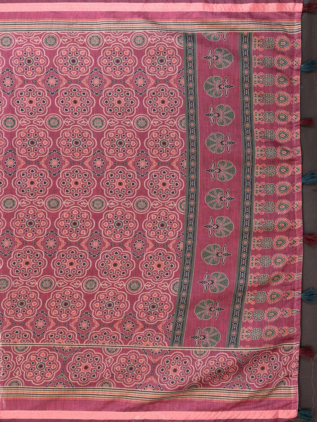 Rosewood Elegance Chanderi Saree with Ethnic Motif Border & Tassels ? Festive & Wedding Wear