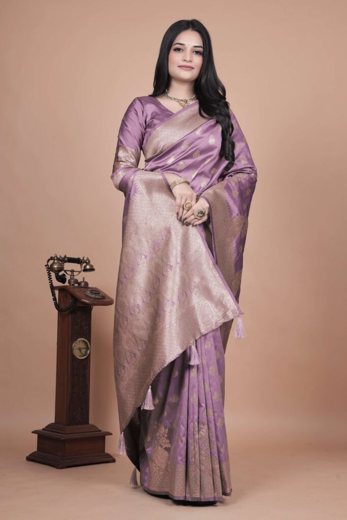 Crafted from premium silk, it is perfect for weddings, festive celebrations, and traditional events. Comes with a matching blouse piece.