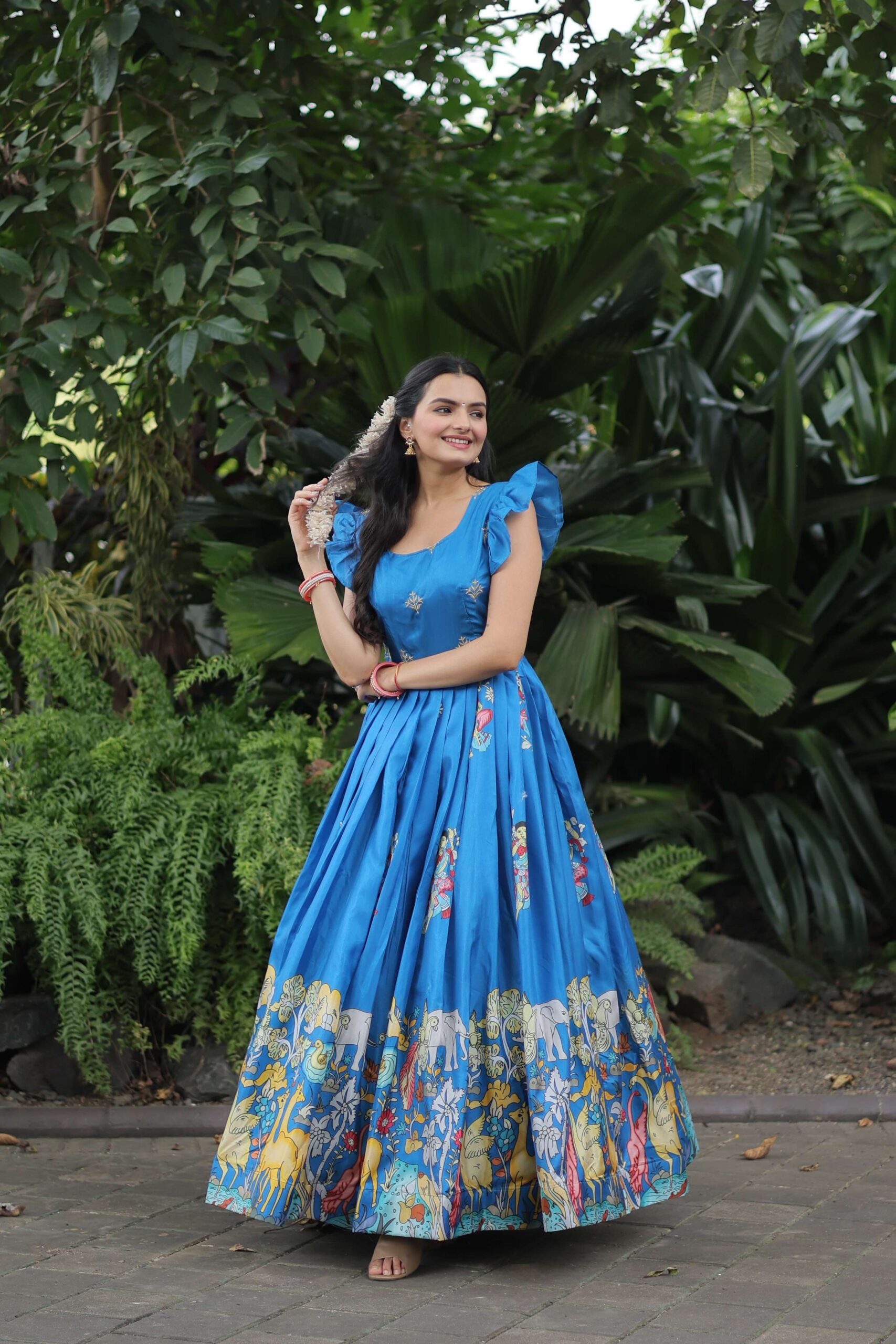 SKY Dola Silk Designer Gown ? Sleeveless Fancy Round Neck Printed Women?s Dress