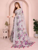 Step into subtle sophistication with the Soft Grey Linen Cotton Saree, designed to blend comfort, style, and modern charm. Made from breathable linen cotton, this saree ensures a lightweight, easy drape for all-day wear. The soft grey base is adorned with vibrant purple floral prints, creating a refreshing and elegant look suitable for any occasion.
