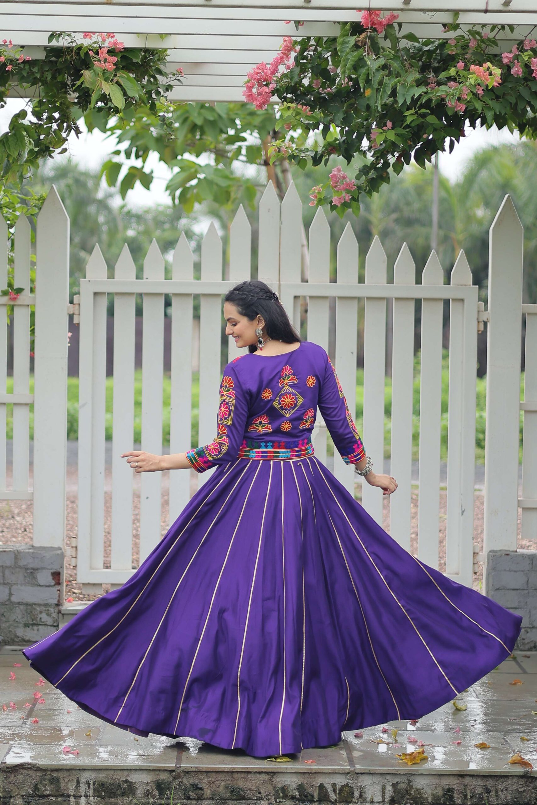 Step into the festive season with this beautifully crafted Navratri lehenga choli set. The full-stitched Roman fabric lehenga features exquisite Gota-Patti lace and a 6-meter flared kali, designed for graceful movement and all-night comfort. The coordinating Koti-style blouse is adorned with traditional Kutchi Gamthi embroidery, adding a touch of cultural charm to your festive look. With a soft cotton inner lining, adjustable waist closure, and a lightweight design, this ensemble ensures both style and ease. Available in five stunning shades?Maroon, Pink, Parrot, Purple, and Off-White?making it a perfect choice for dancing, devotion, and community celebrations.