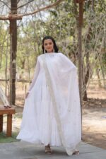 White Premium Faux Georgette Designer Gown with Sequined Dupatta ? Fully Flaired Ready-to-Wear Set