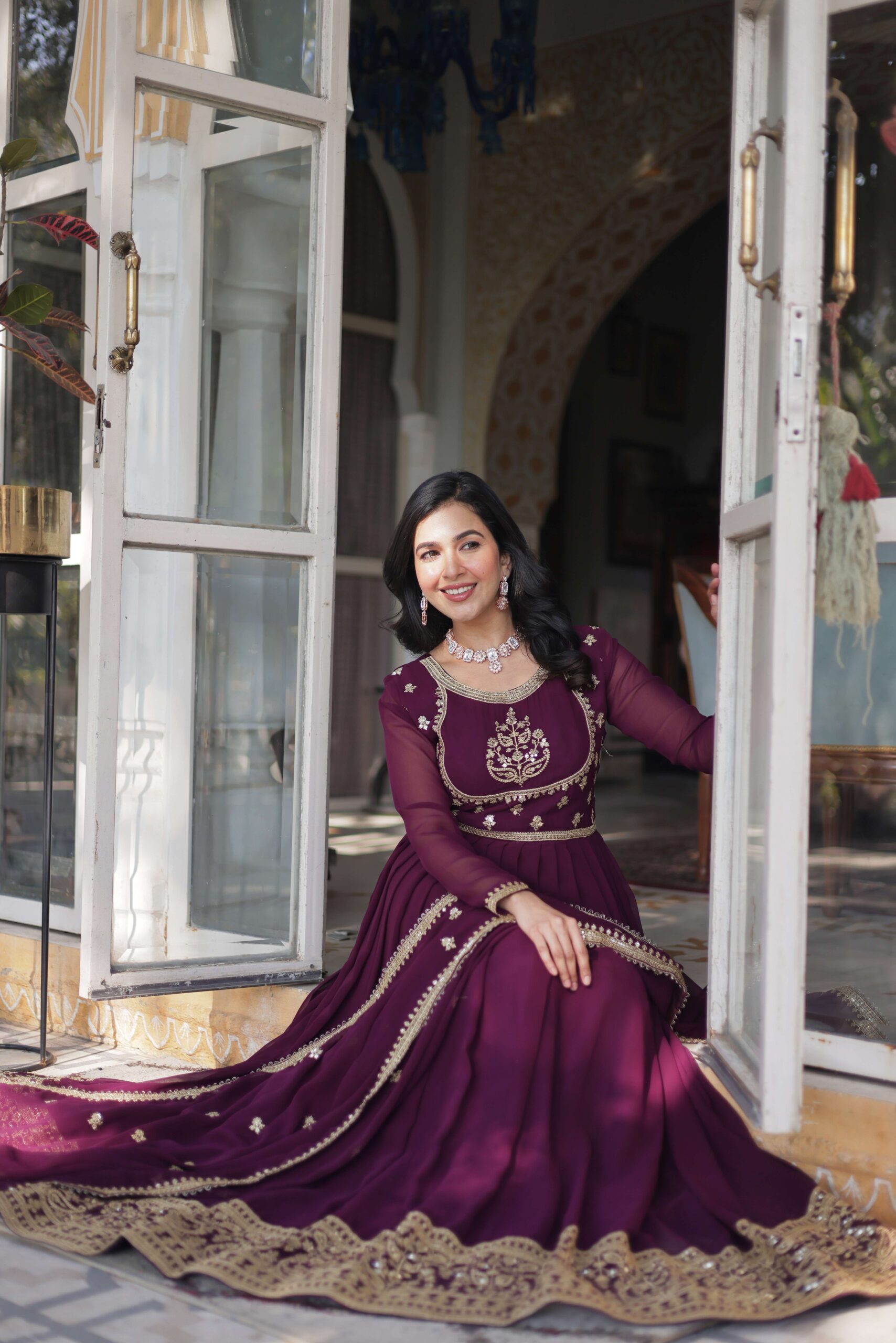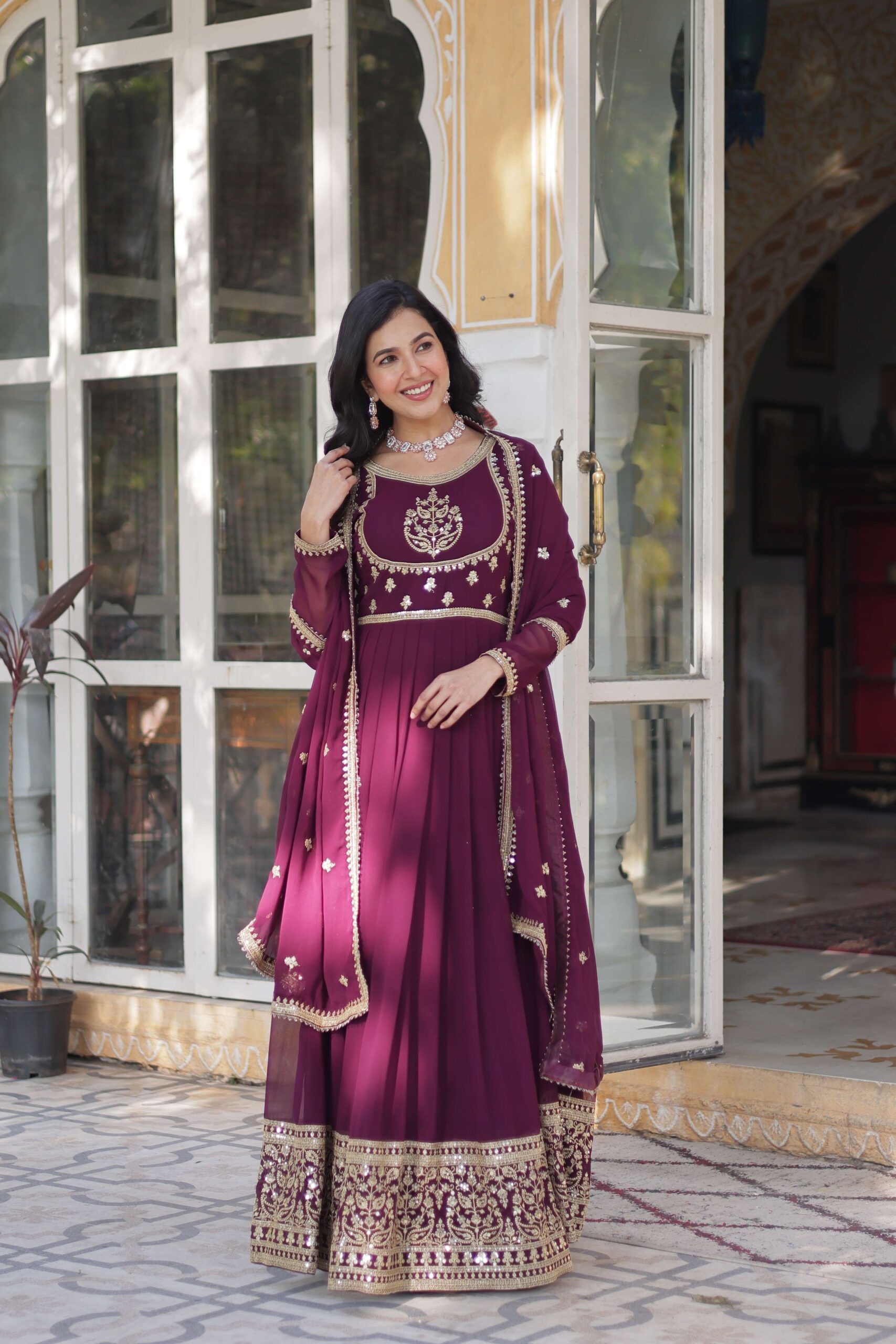 Ideal for weddings, parties, and festive events, this gown-with-dupatta set blends glamour, comfort, and sophistication into one stunning ensemble.