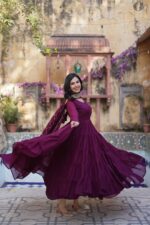 Wine Star Georgette Fully Flared Gown with Sequins Embroidered Dupatta