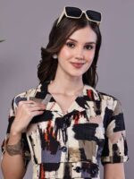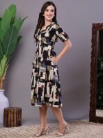 Women’s Beige & Black Abstract Print Cotton Shirt Dress Midi Dresses