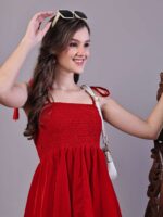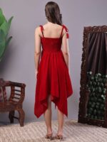 Level up your style with this trend-setting dress. Its vibrant abstract print and distinctive high-low handkerchief hemline create an eye-catching look. The tie-up shoulder straps ensure a comfortable and adjustable fit. Whether for daytime casual events or evening gatherings, this dress is the perfect choice for effortless flair.