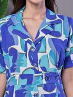 Women’s Blue Abstract Print Cotton Shirt Dress