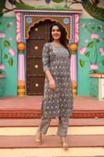 Women?s Blue Cotton Printed Kurta Set with Pants ? Elegant Ethnic Daily & Office Wear