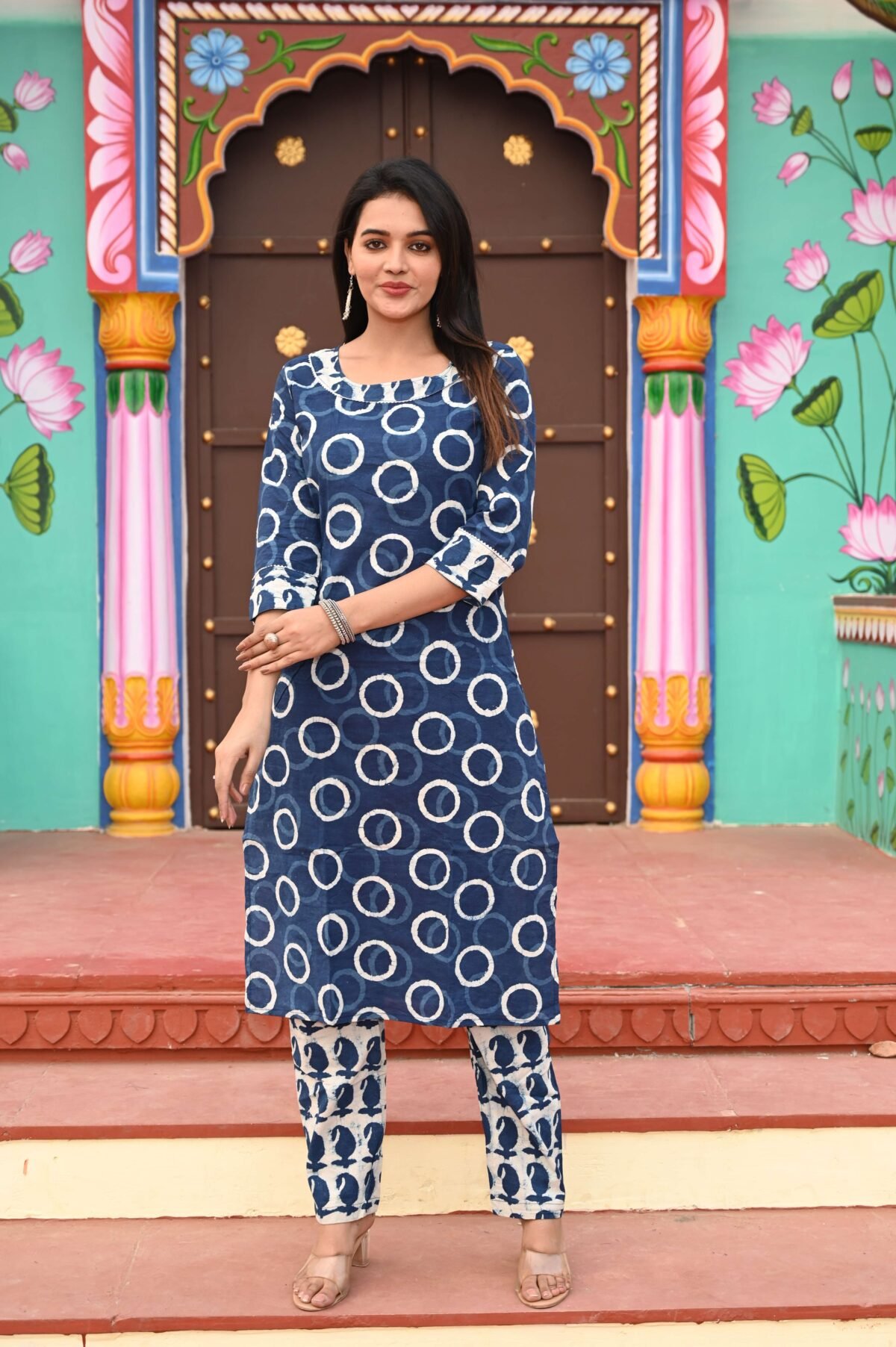 Women?s Blue Cotton Printed Kurta Set with Pants ? Elegant Ethnic Daily & Office Wear