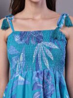Women’s Blue Printed Asymmetrical Hem Smocked A-Line Dress Midi Dresses