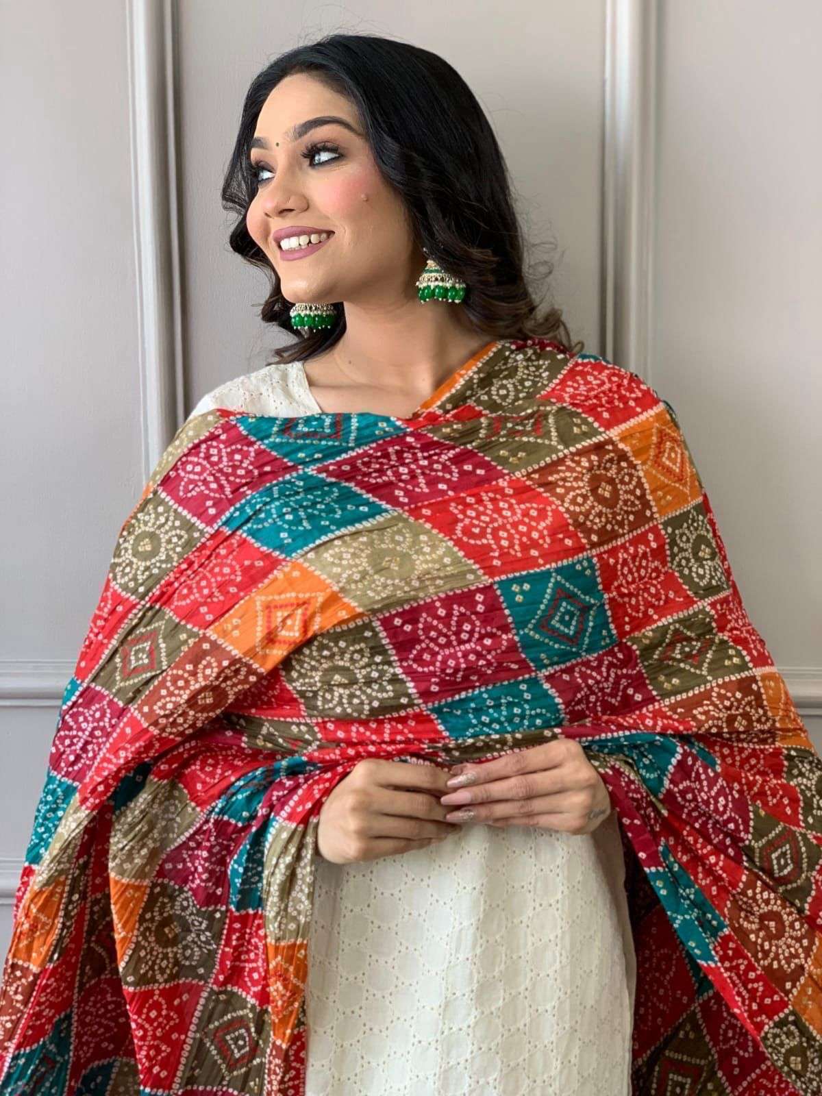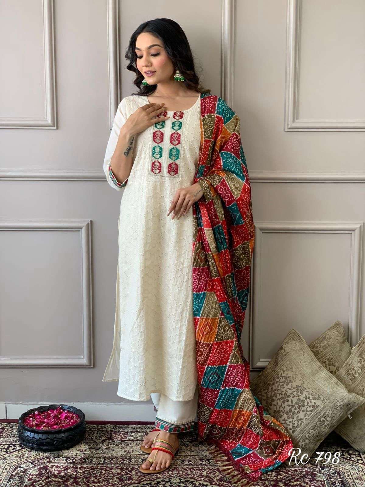 Women’s Cotton Chikankari Print Straight Kurti with Pant andMulmul Dupatta Set