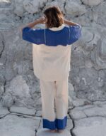 Women’s Cotton Dip-Dye Pattern Two-Piece Lounge Set Tunic with Wide-Leg Pants, Resort Wear ( Navy Blue Beige )