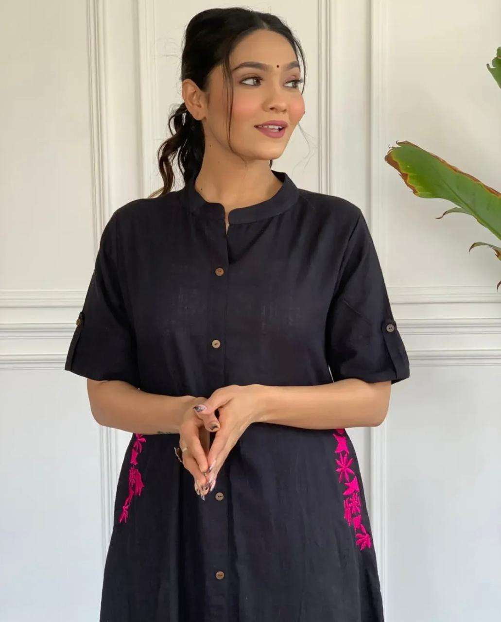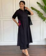 Women’s Cotton Embroiderd Long A-Line Kurti with Palazzo
