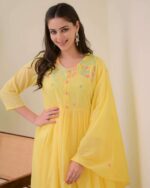 3 Piece Kurti with Pant and Dupatta Set. Designed for comfort and style, this outfit offers a perfect combination of tradition and modern fashion. The stylish kurti, paired with matching pants and a graceful dupatta, makes it an ideal choice for festive occasions, office wear, family gatherings, or casual outings. Its smart design and easy-to-wear fit ensure you look effortlessly classy all day long.