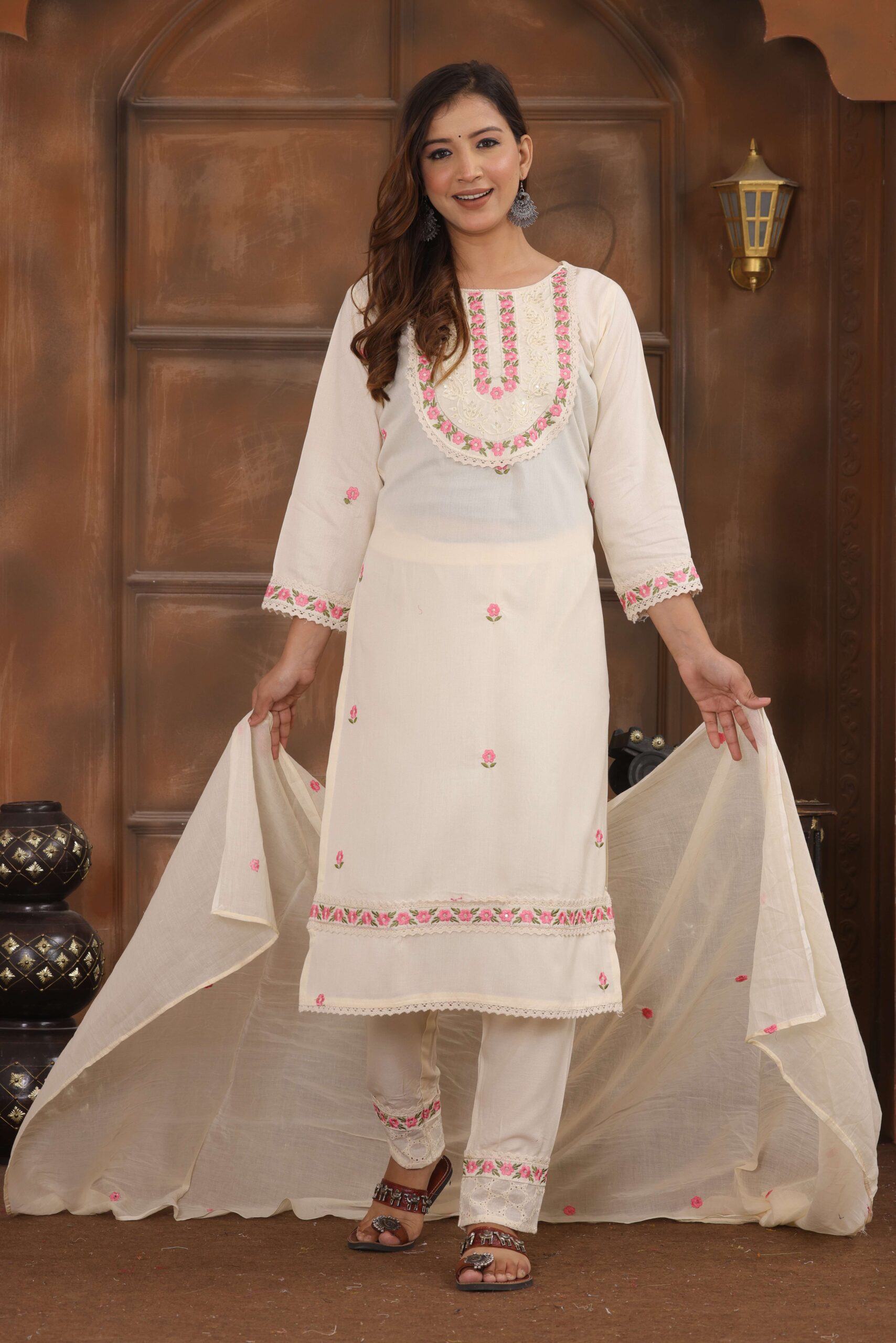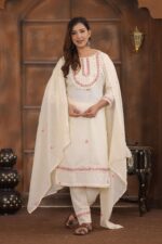 3 Piece Kurti with Pant and Dupatta Set. Designed for comfort and style, this outfit offers a perfect combination of tradition and modern fashion. The stylish kurti, paired with matching pants and a graceful dupatta, makes it an ideal choice for festive occasions, office wear, family gatherings, or casual outings. Its smart design and easy-to-wear fit ensure you look effortlessly classy all day long.