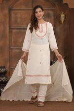 Women’s Cotton Embroidery Straight Kurti With Pant Set