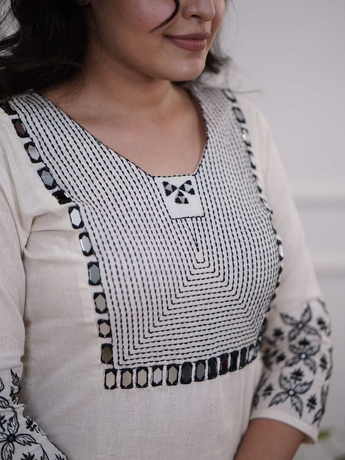 Women’s Cotton Embroidery Straight Kurti With Pant Set