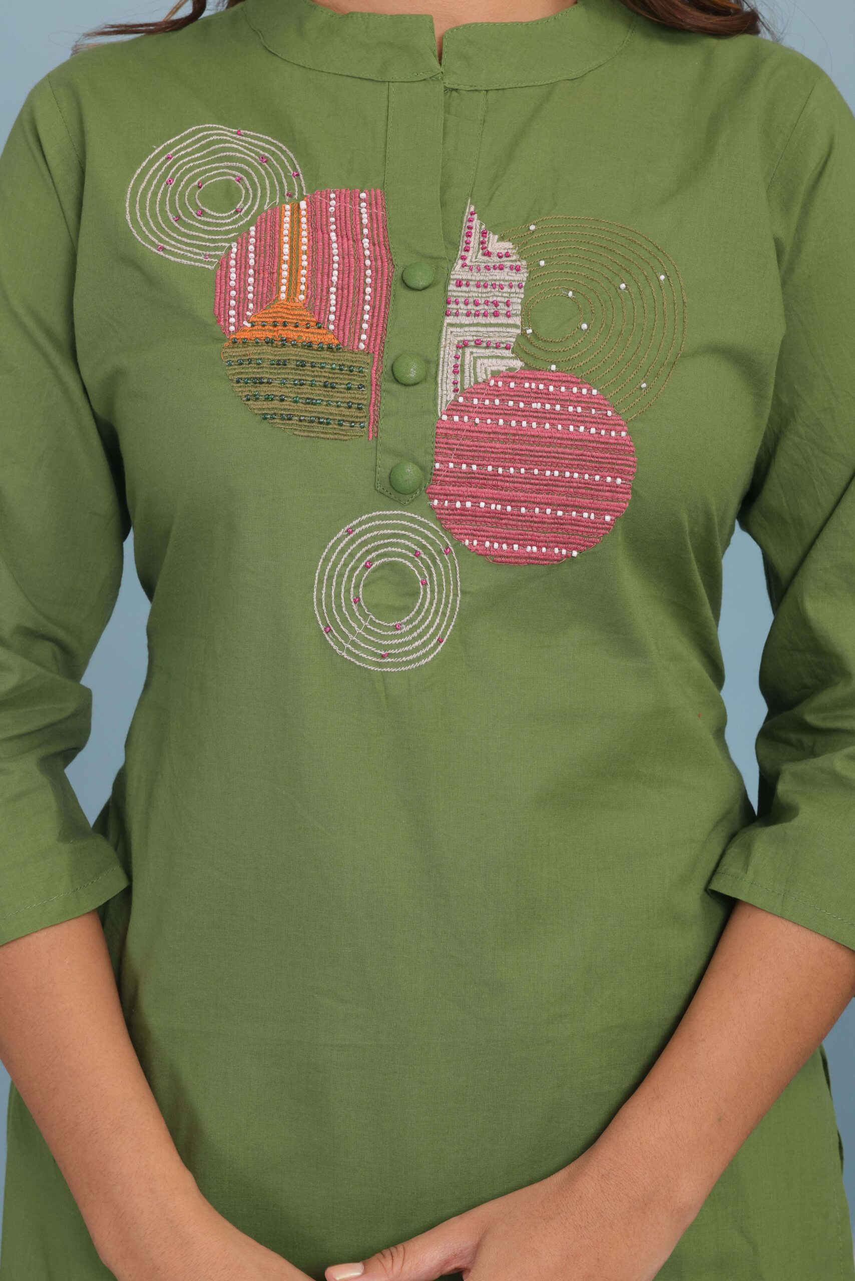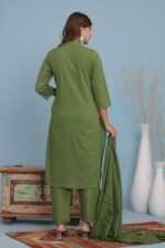 Women’s Cotton Embroidery Straight Kurti With Pant Set