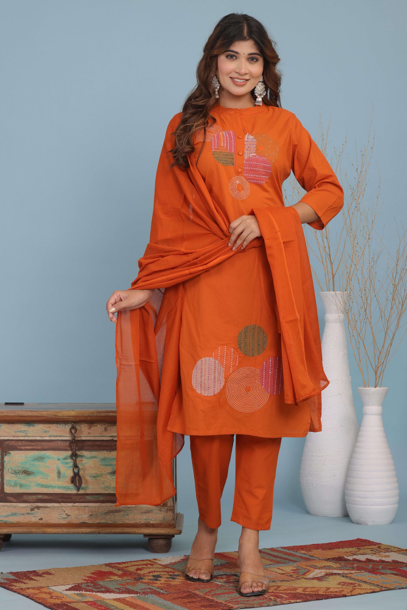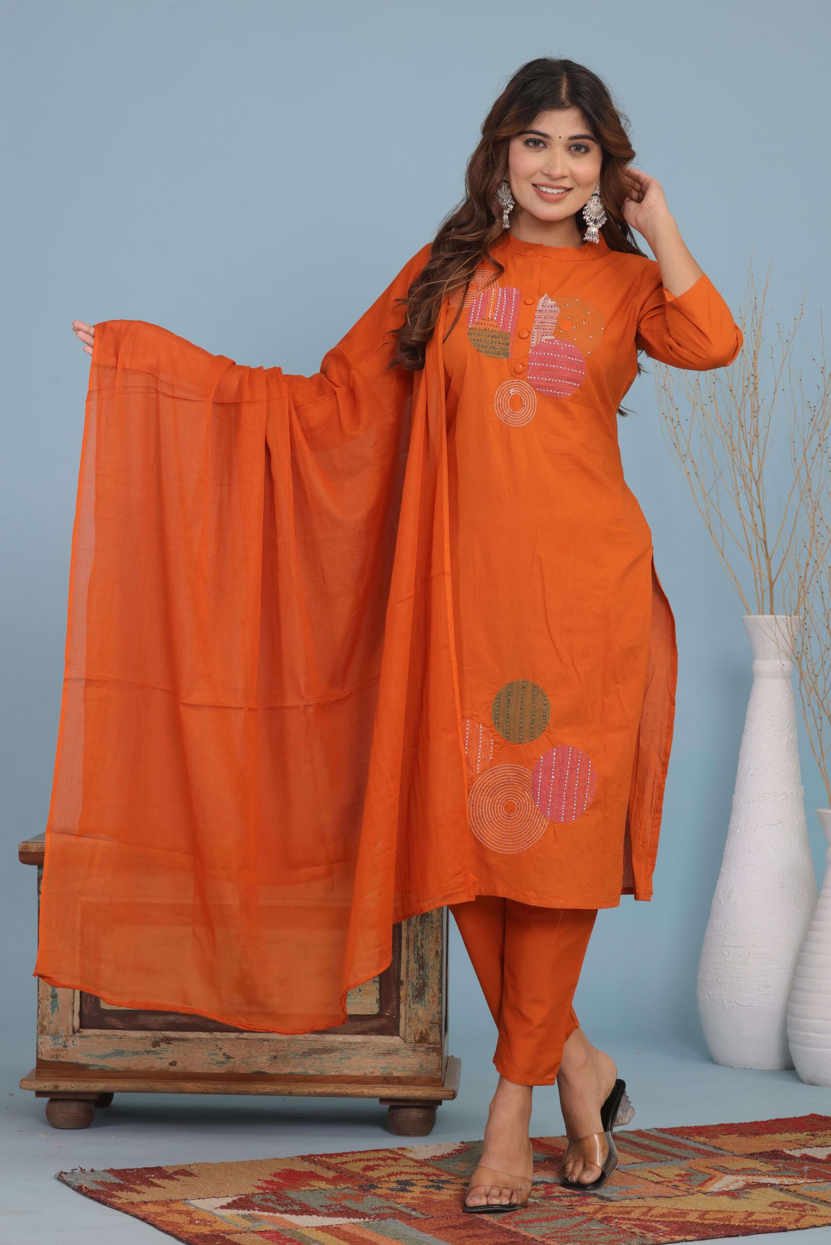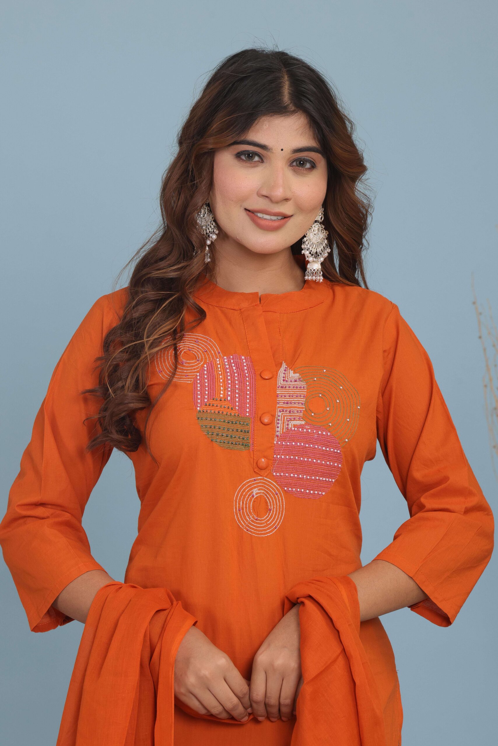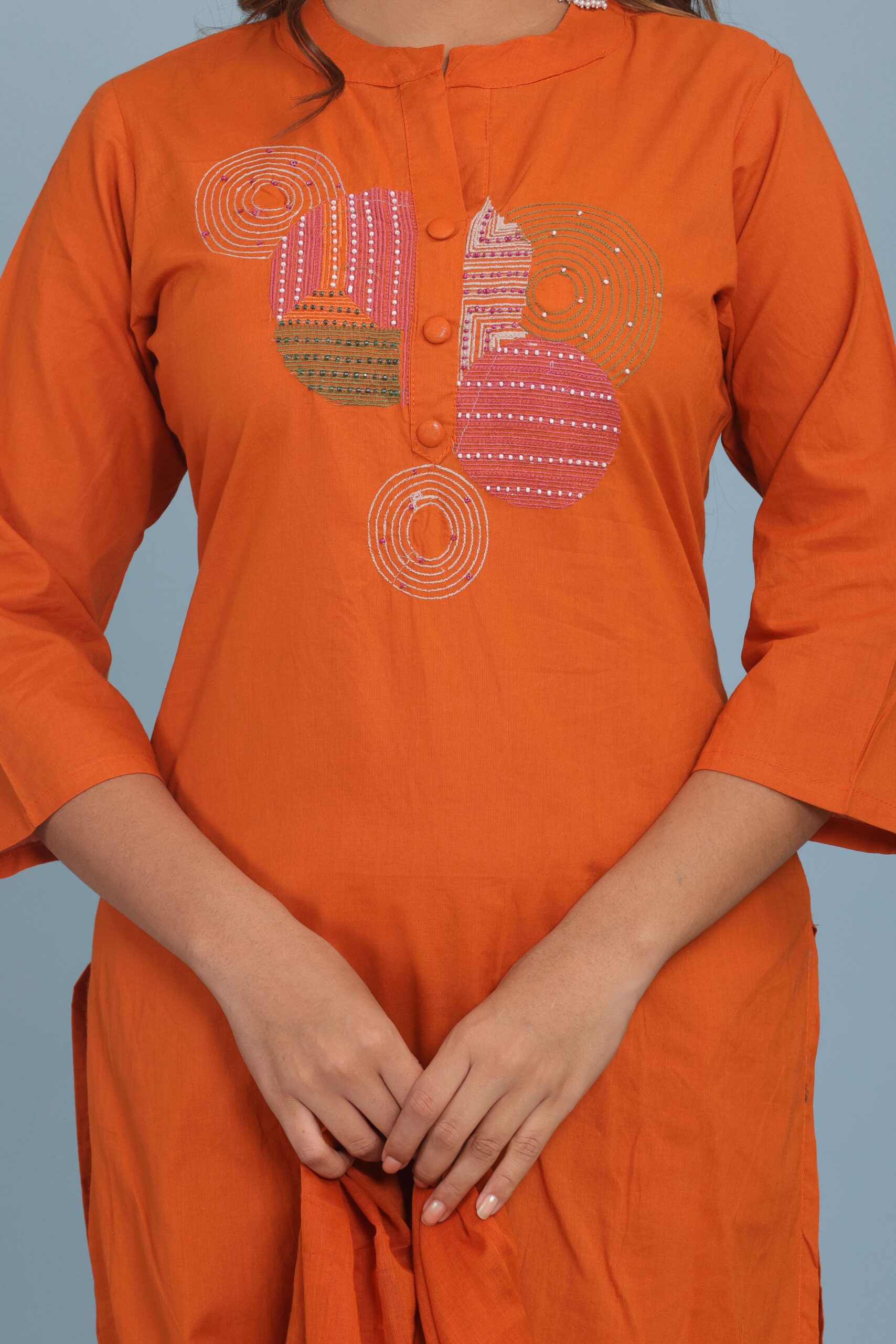 Women’s Cotton Embroidery Straight Kurti With Pant Set