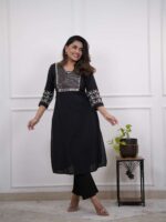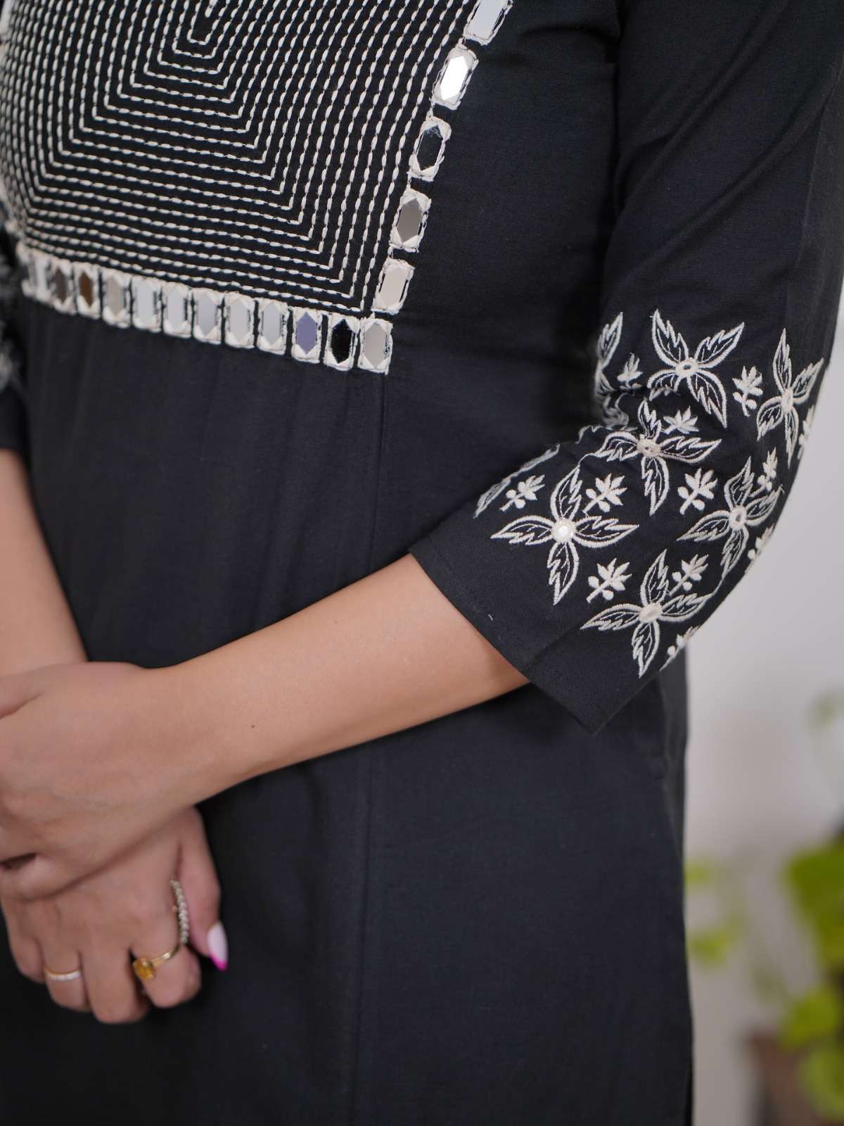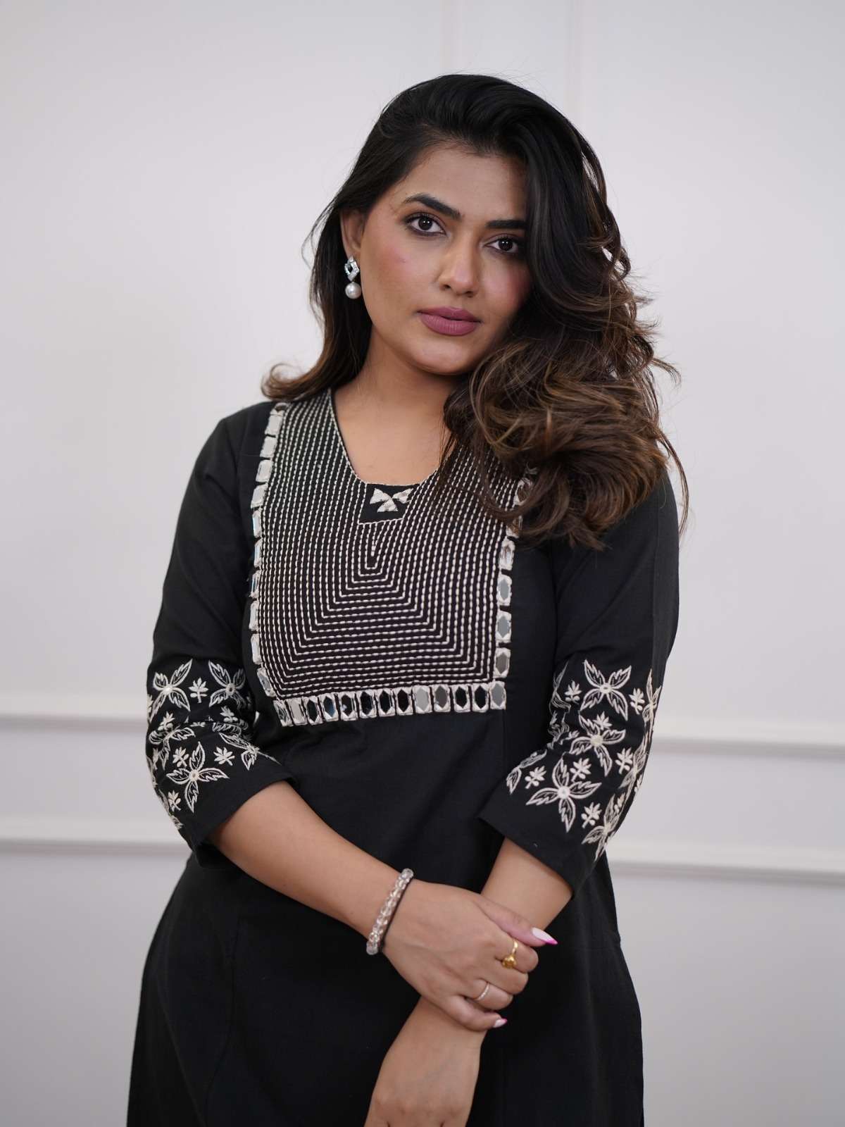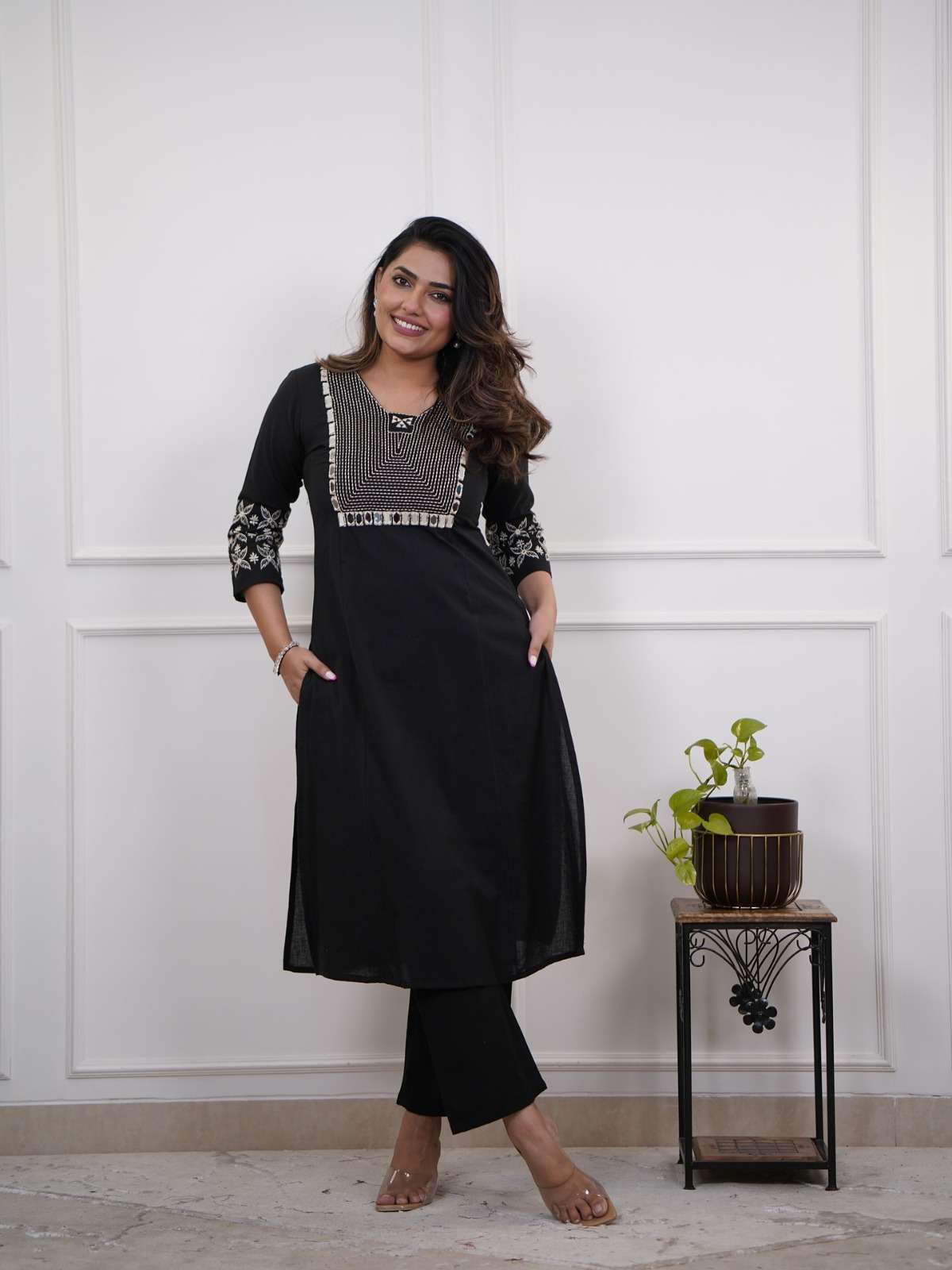 Women’s Cotton Embroidery Straight Kurti With Pant Set
