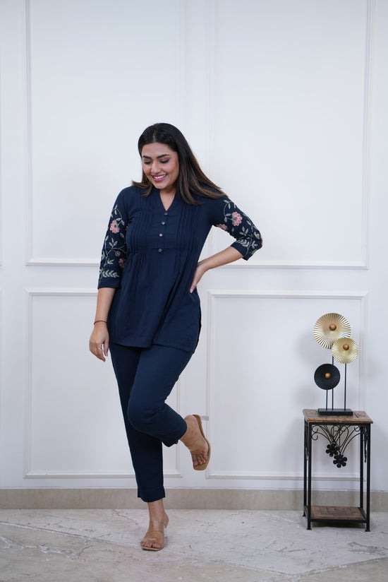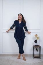 Women’s Cotton Embroidery Straight Short kurti With Pant set