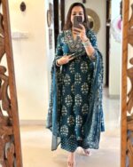 Women’s Cotton Floral Printed Anazrkali Kurti with Pant & Dupatta Set