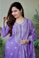 3 Piece Kurti with Pant and Dupatta Set. Designed for comfort and style, this outfit offers a perfect combination of tradition and modern fashion. The stylish kurti, paired with matching pants and a graceful dupatta, makes it an ideal choice for festive occasions, office wear, family gatherings, or casual outings. Its smart design and easy-to-wear fit ensure you look effortlessly classy all day long.