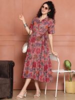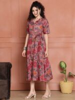 Women’s Cotton A-line Maxi Dress, featuring a beautiful all-over floral print. Designed with short sleeves and a flattering flared silhouette, this gown-style dress is both breathable and stylish. Crafted from soft cotton, it’s the perfect choice for summer days, casual outings, vacations, or brunch dates.