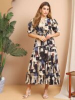 Women’s Cotton Printed Midi Dress featuring a flattering V-neck and a fit & flare silhouette. Made from soft, breathable cotton, this dress offers all-day comfort and a charming printed design. Perfect for casual outings, brunches, vacations, or summer getaways, this midi dress is your go-to for effortless chic.