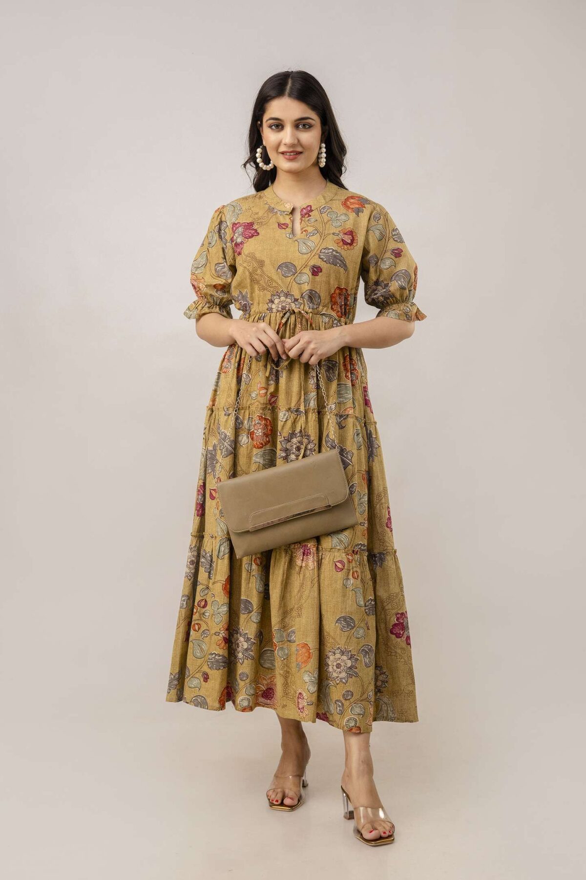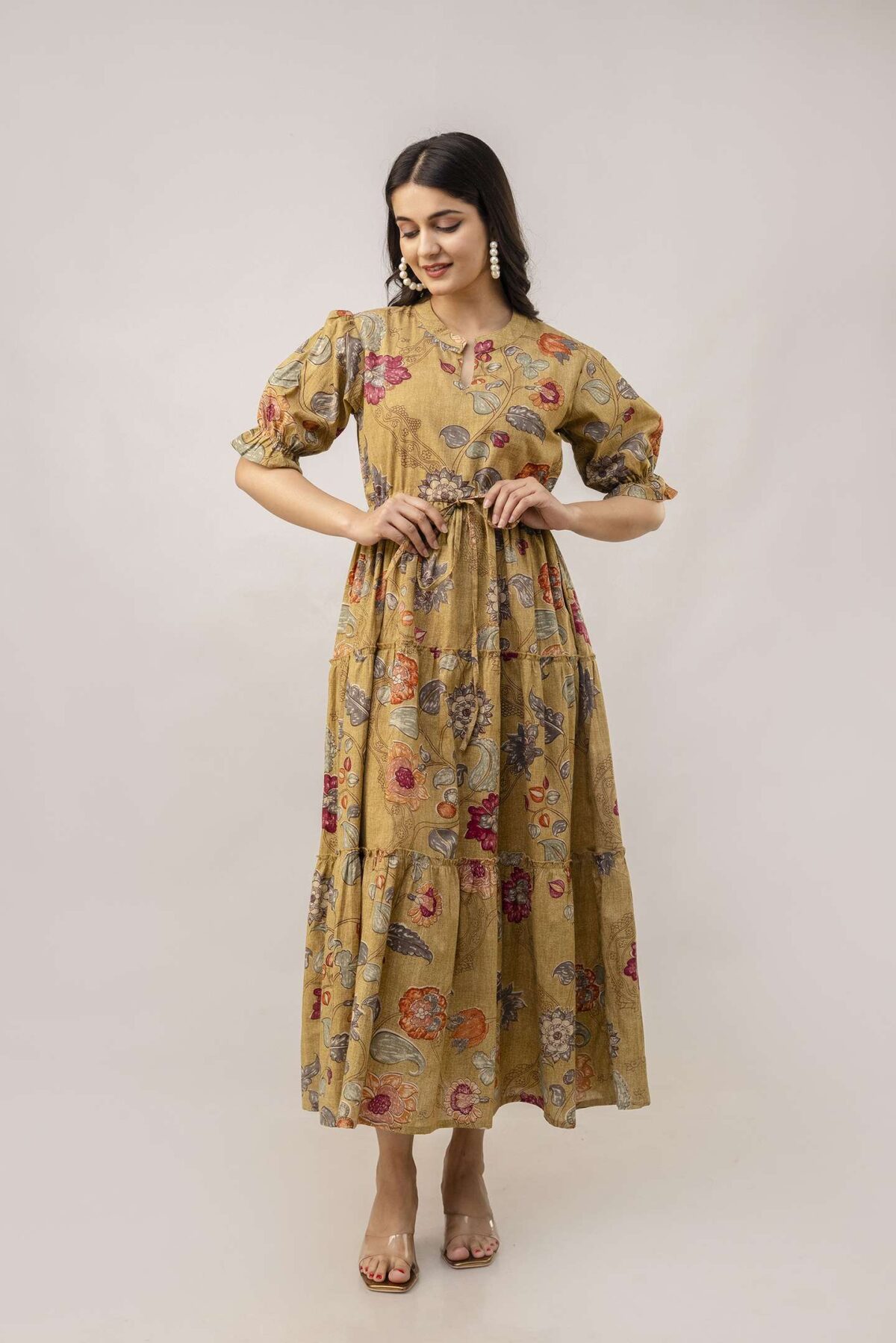 Women’s Cotton Printed Midi Dress featuring a flattering V-neck and a fit & flare silhouette. Made from soft, breathable cotton, this dress offers all-day comfort and a charming printed design. Perfect for casual outings, brunches, vacations, or summer getaways, this midi dress is your go-to for effortless chic.