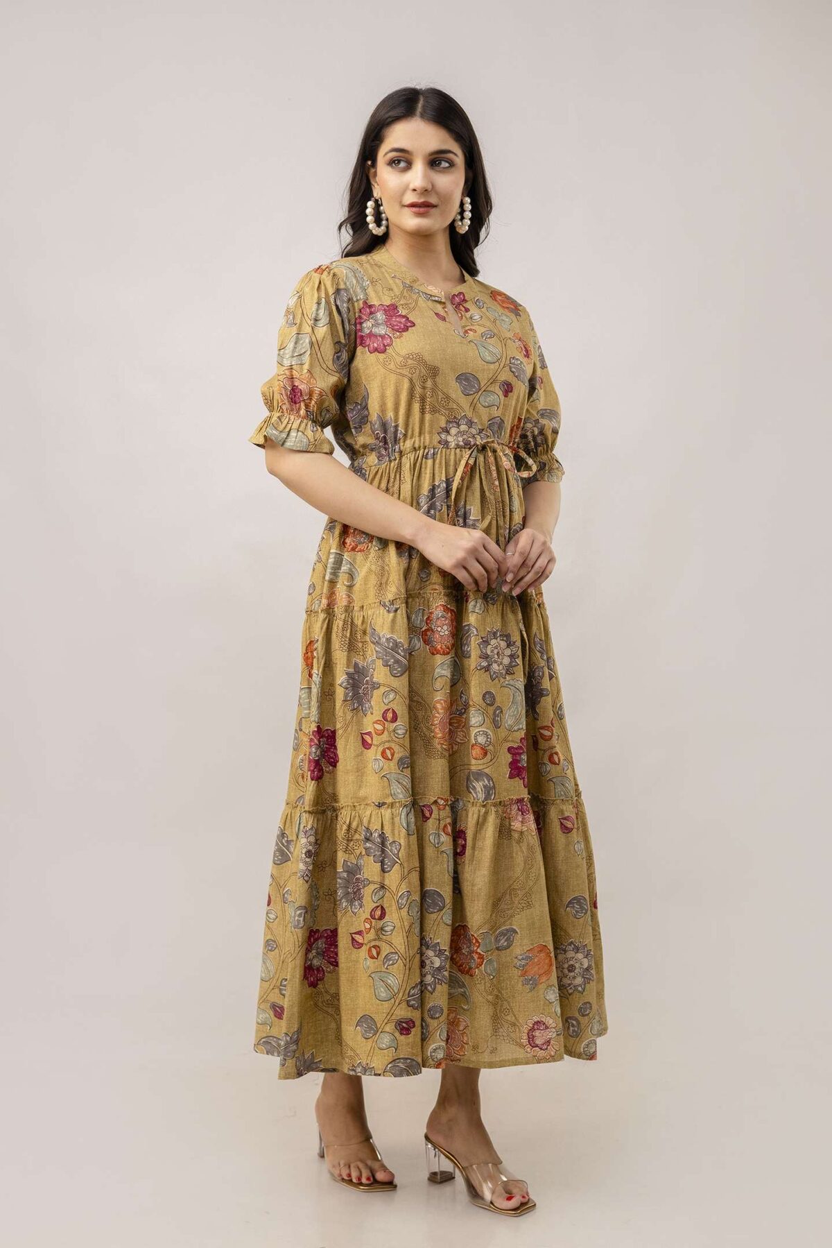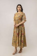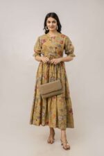 Women’s Cotton Printed Fit & Flare Anarkali Gown Midi Dress