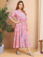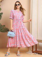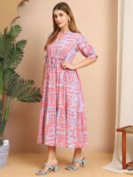 Women’s Cotton Printed Midi Dress featuring a flattering V-neck and a fit & flare silhouette. Made from soft, breathable cotton, this dress offers all-day comfort and a charming printed design. Perfect for casual outings, brunches, vacations, or summer getaways, this midi dress is your go-to for effortless chic.