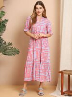 Women’s Cotton Printed Fit & Flare Anarkali Gown Midi Dress
