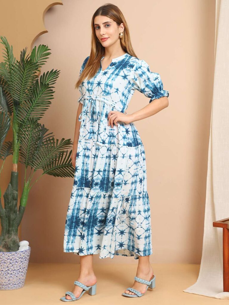 Women’s Cotton Printed Midi Dress featuring a flattering V-neck and a fit & flare silhouette. Made from soft, breathable cotton, this dress offers all-day comfort and a charming printed design. Perfect for casual outings, brunches, vacations, or summer getaways, this midi dress is your go-to for effortless chic.