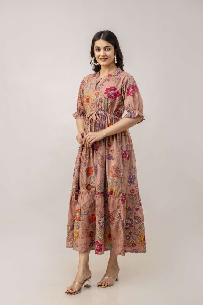 Women’s Cotton Printed Fit & Flare Anarkali Gown Midi Dress