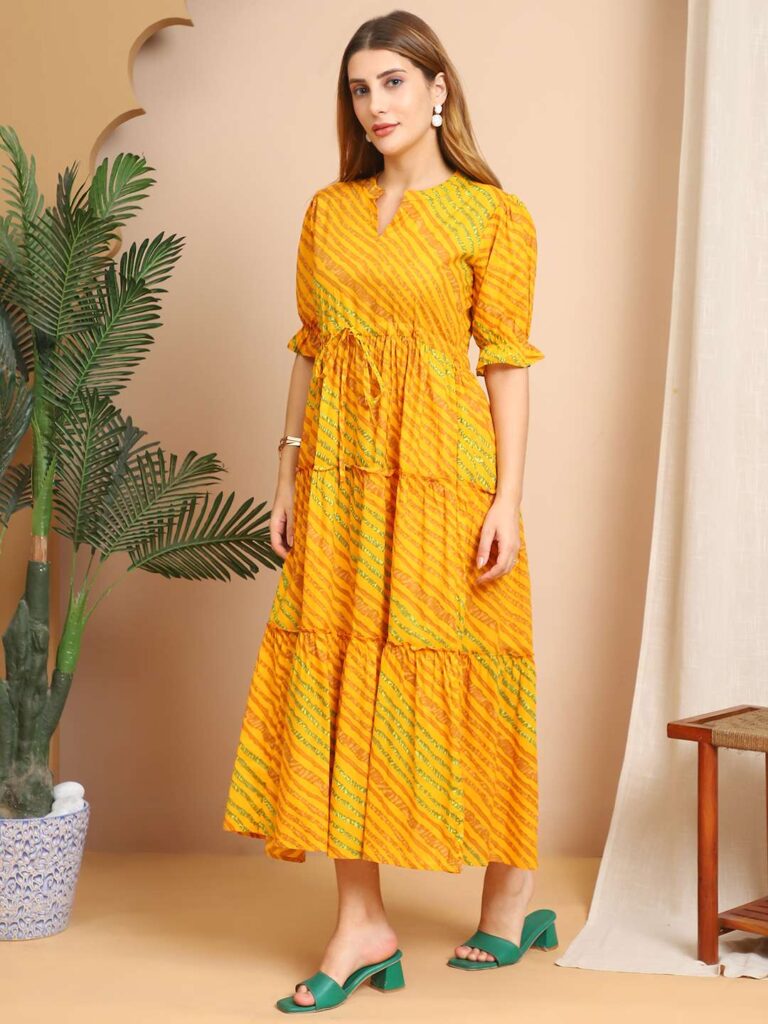 Women’s Cotton Printed Midi Dress featuring a flattering V-neck and a fit & flare silhouette. Made from soft, breathable cotton, this dress offers all-day comfort and a charming printed design. Perfect for casual outings, brunches, vacations, or summer getaways, this midi dress is your go-to for effortless chic.