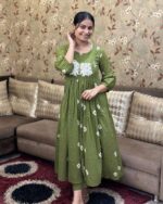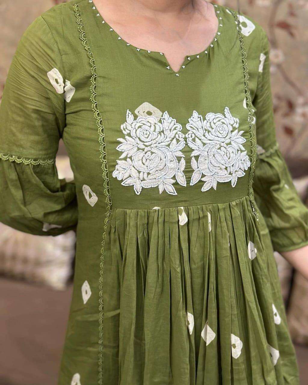 Women’s Cotton Printed Long Anarkali Kurti With Pant