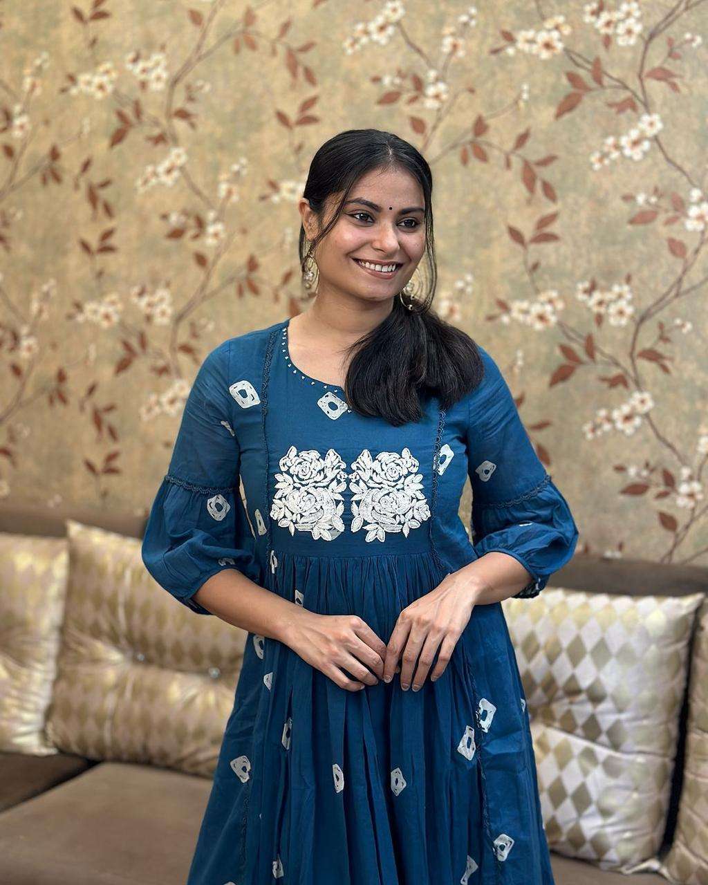 Women’s Cotton Printed Long Anarkali Kurti With Pant