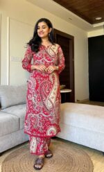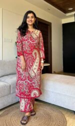 Women’s Cotton Printed Straight Kurti with Pant Two Piece Co-ord Set