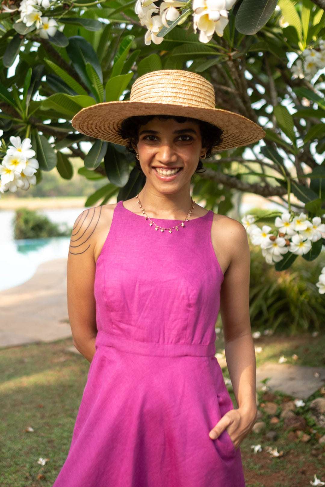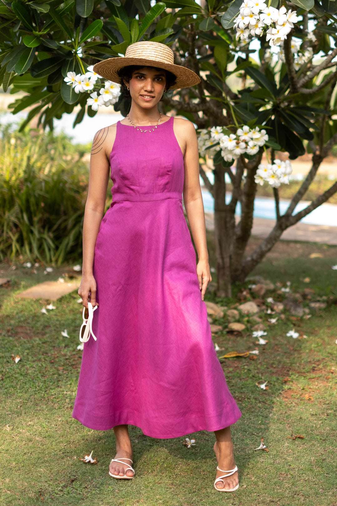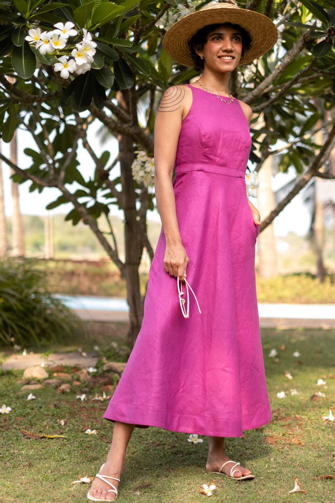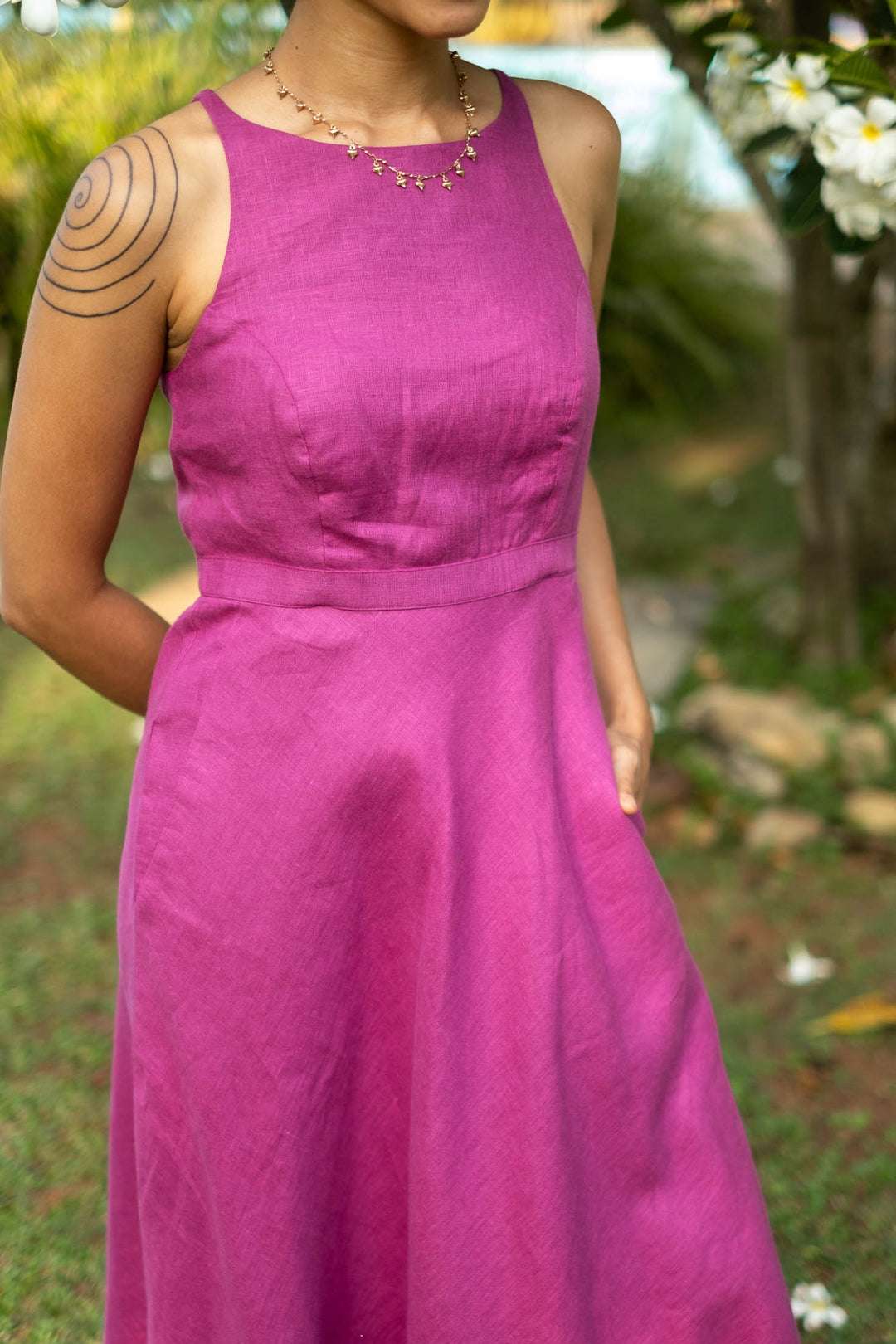 Women’s Cotton Solid Pain Sleeveless Cutaway Midi Dress Midi Dress Stylish Western One Piece Casual Dress ( Purple )
