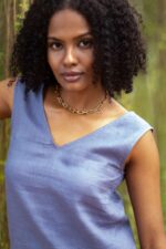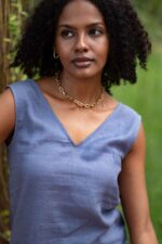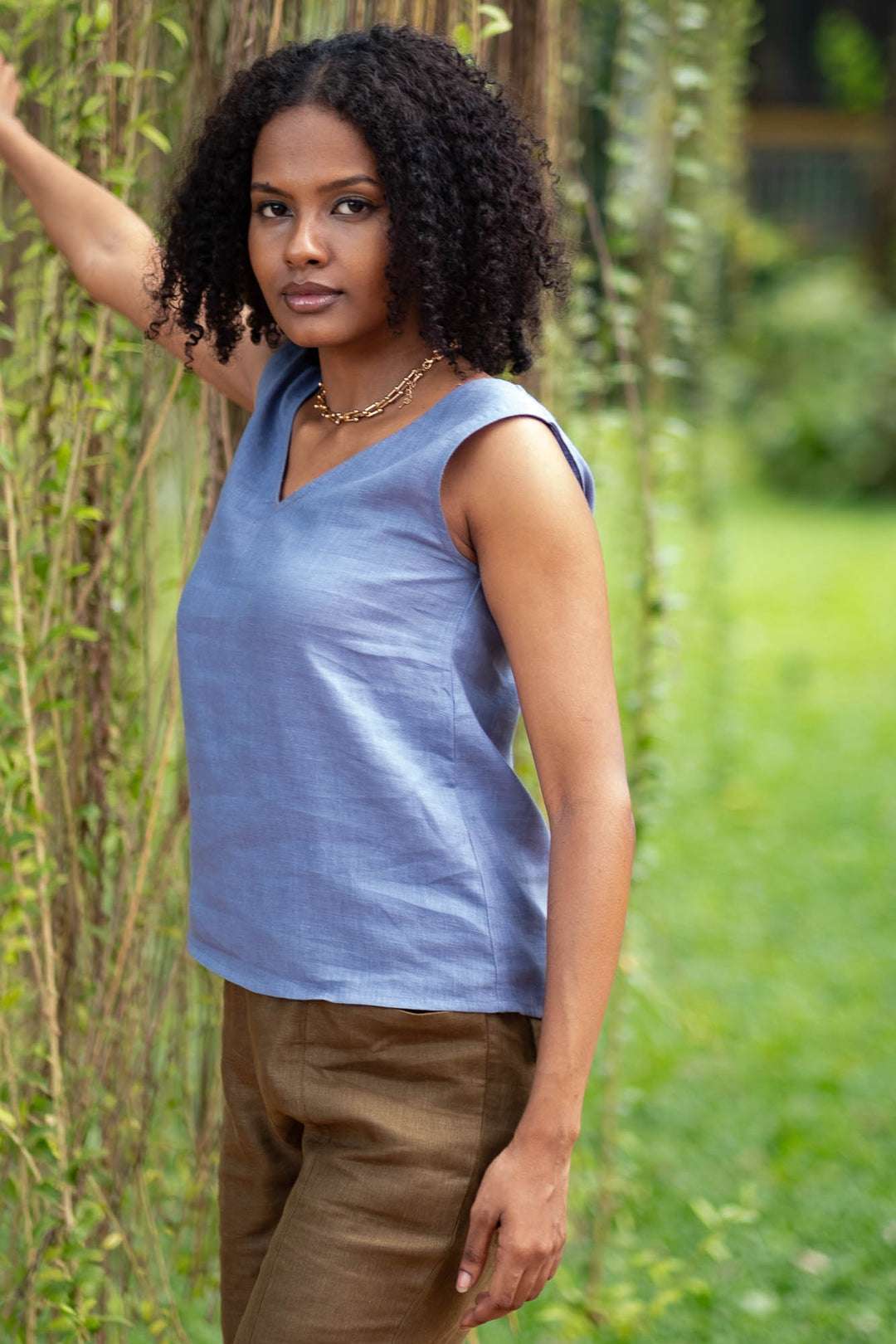 Women’s Cotton Solid V Neck Sleeveless 2 Piece Outfit Loose Tank Top and Wide Leg Palazzo Pants Sets cord set ( Blue )