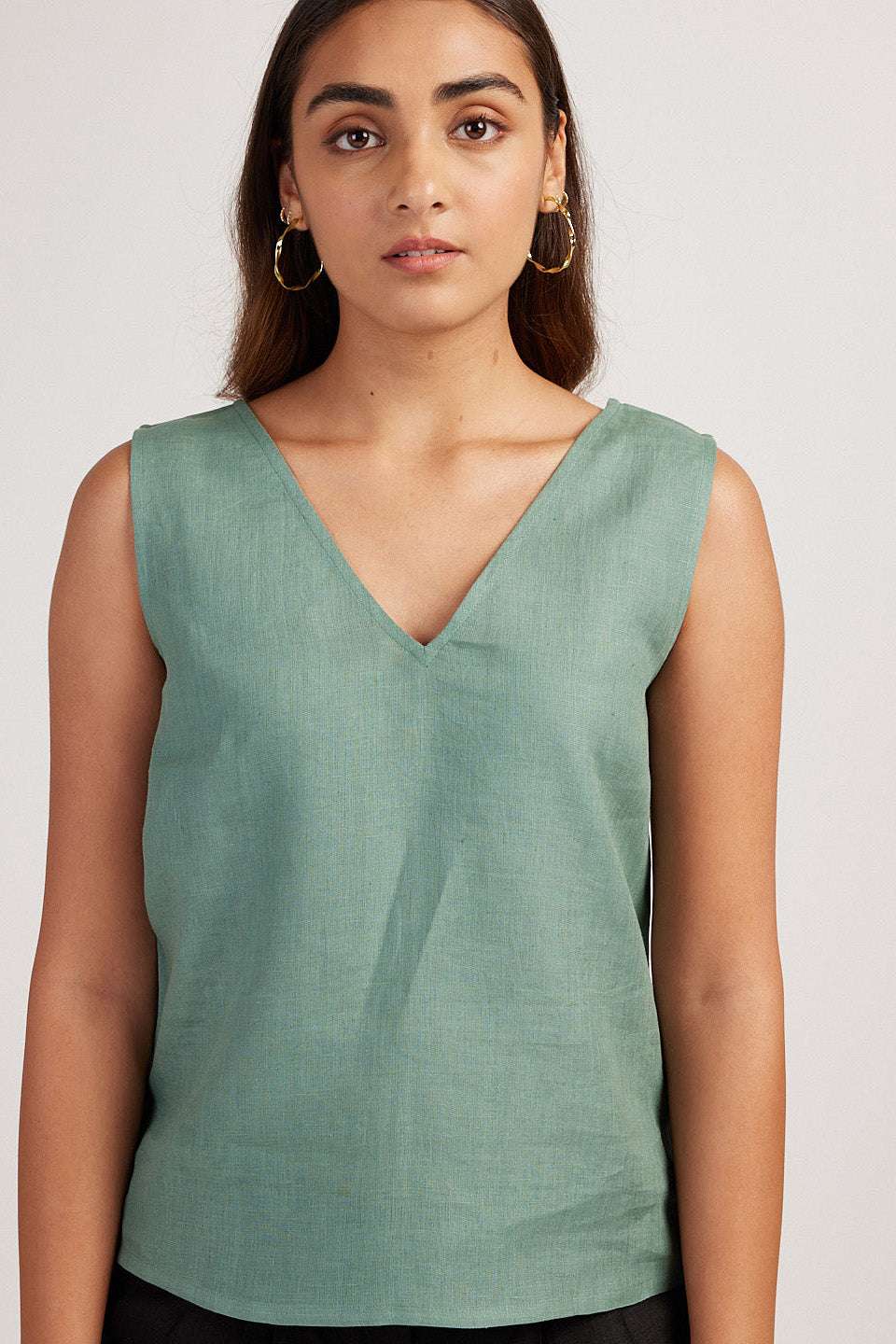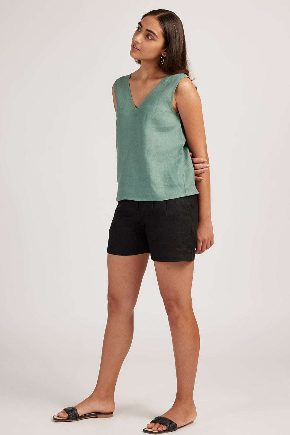 Women’s Cotton Solid V Neck Sleevleess 2 Piece Outfit Loose Tank Top and Shot Scult Sets cord set ( Pista Green Black )