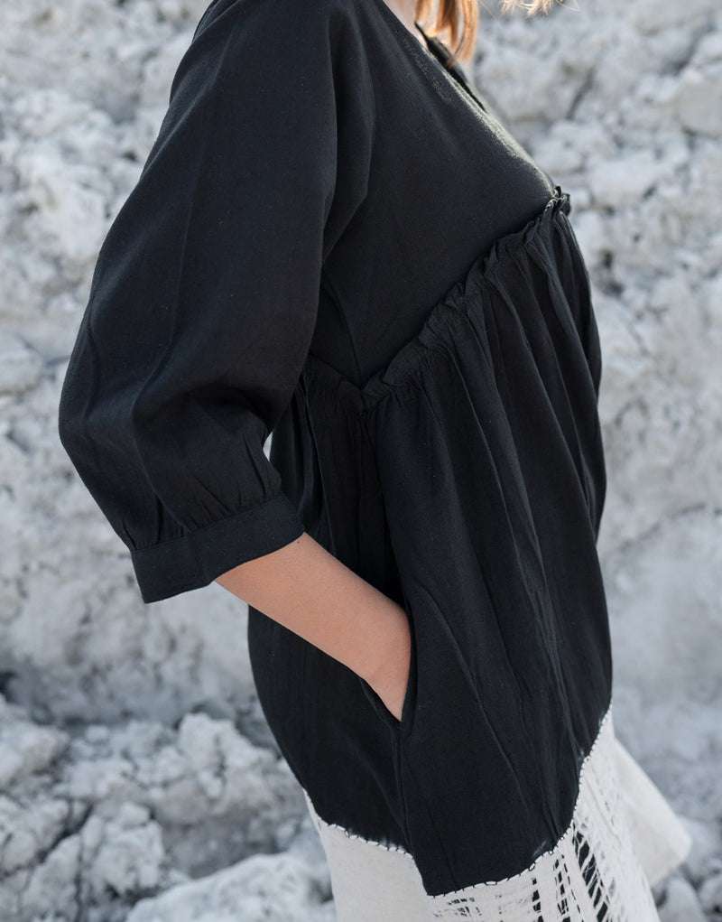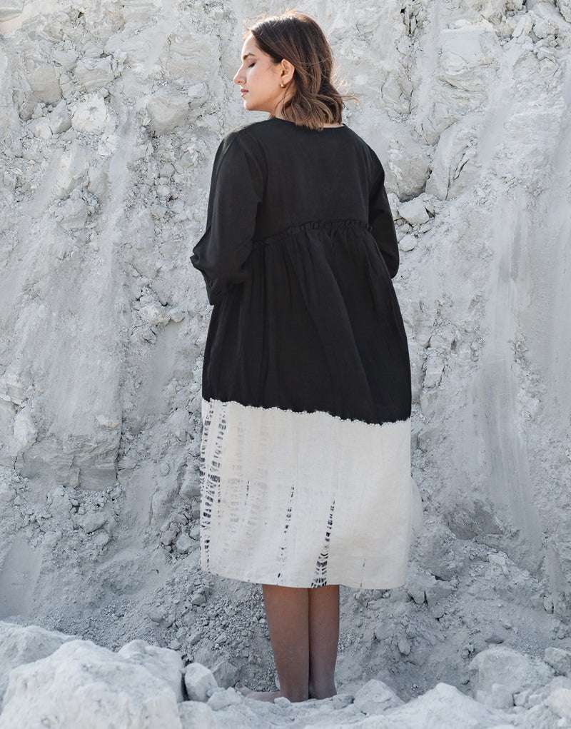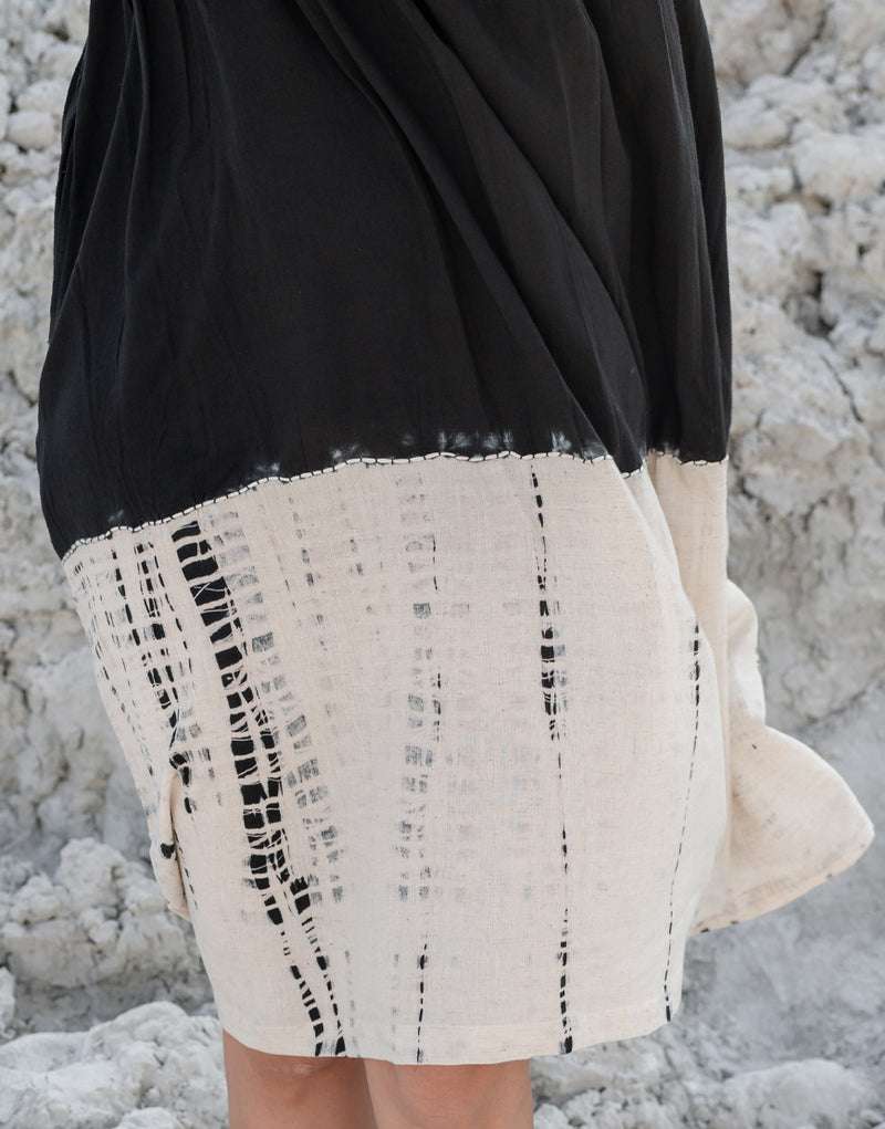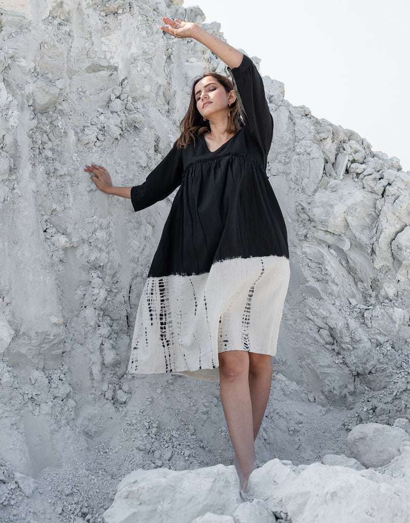 Women’s Cotton Tie-Dye Print Loose Short Sleeveless Tunic Dress ( Black White )