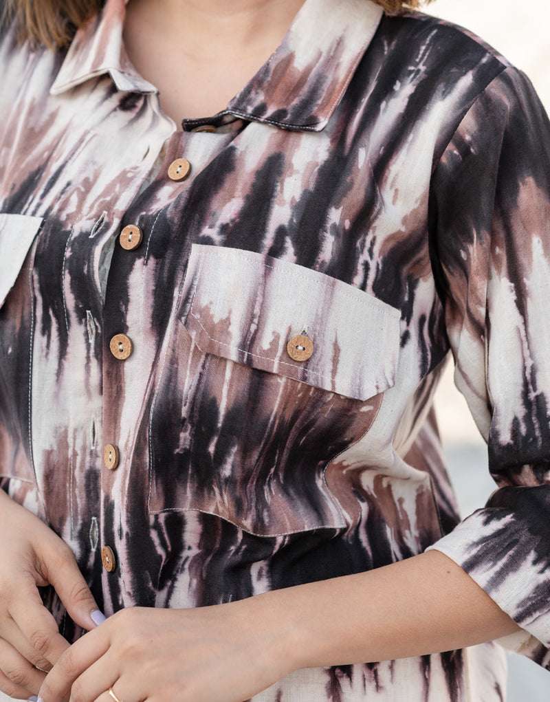 Women’s Cotton Tie-Dye Print Straight Shirt With Pant Casual Summer Collection Cord Set ( Multi2 )