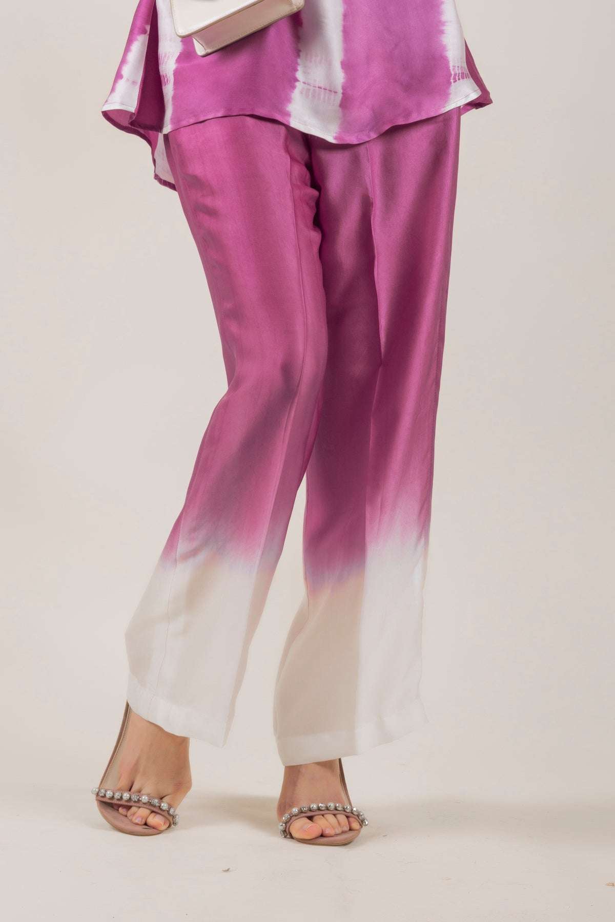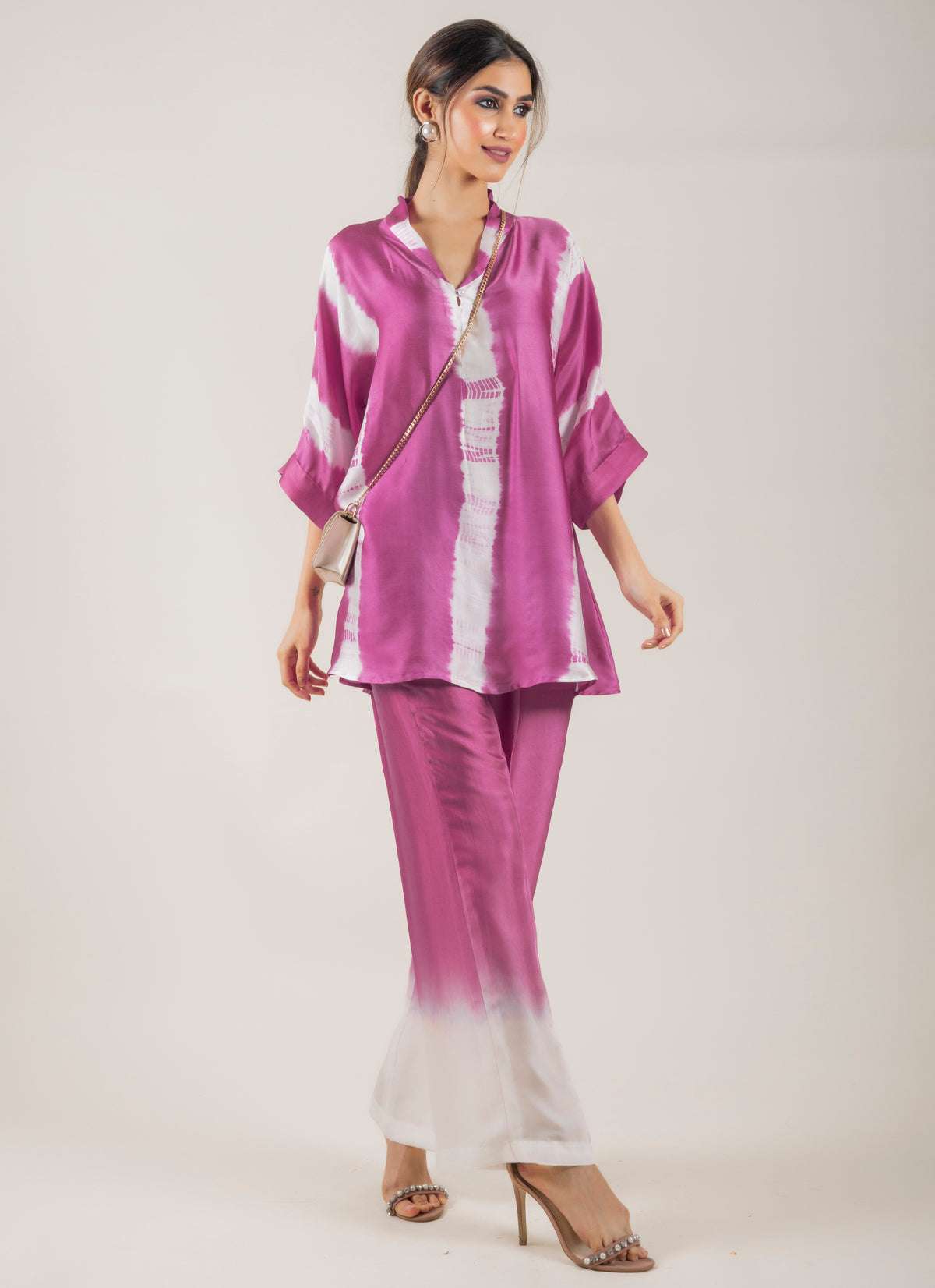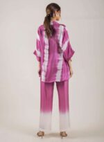 Women’s Cotton Tie Dye Print Two-Piece Lounge Set Tunic with Wide-Leg Pants, Resort Wear ( Purple White )