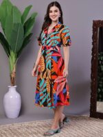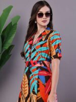 Women’s Leaf Print Button-Down Cotton Midi Dress