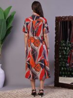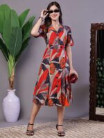 Women’s Leaf Print Button-Down Cotton Midi Dress