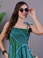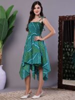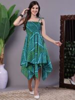Women’s Leheriya Asymmetrical Hem Smocked A-Line Dress Midi Dresses